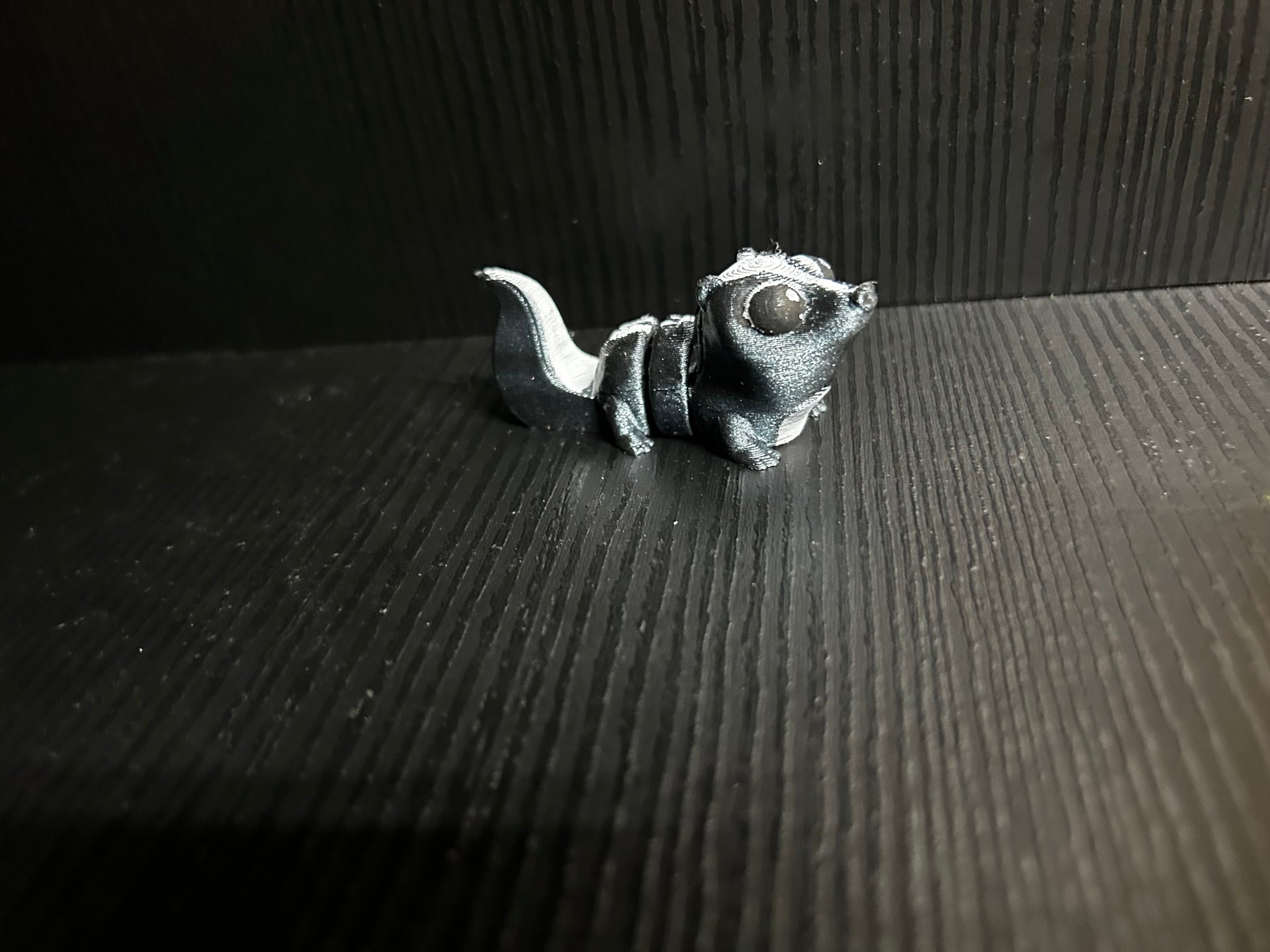 This artfully crafted skunk is 3D printed and hand painted with lifelike details. Its articulated body allows for realistic posing and invites creative play. Bring nature to your desk or shelf by adding this one-of-a-kind piece to your collection.