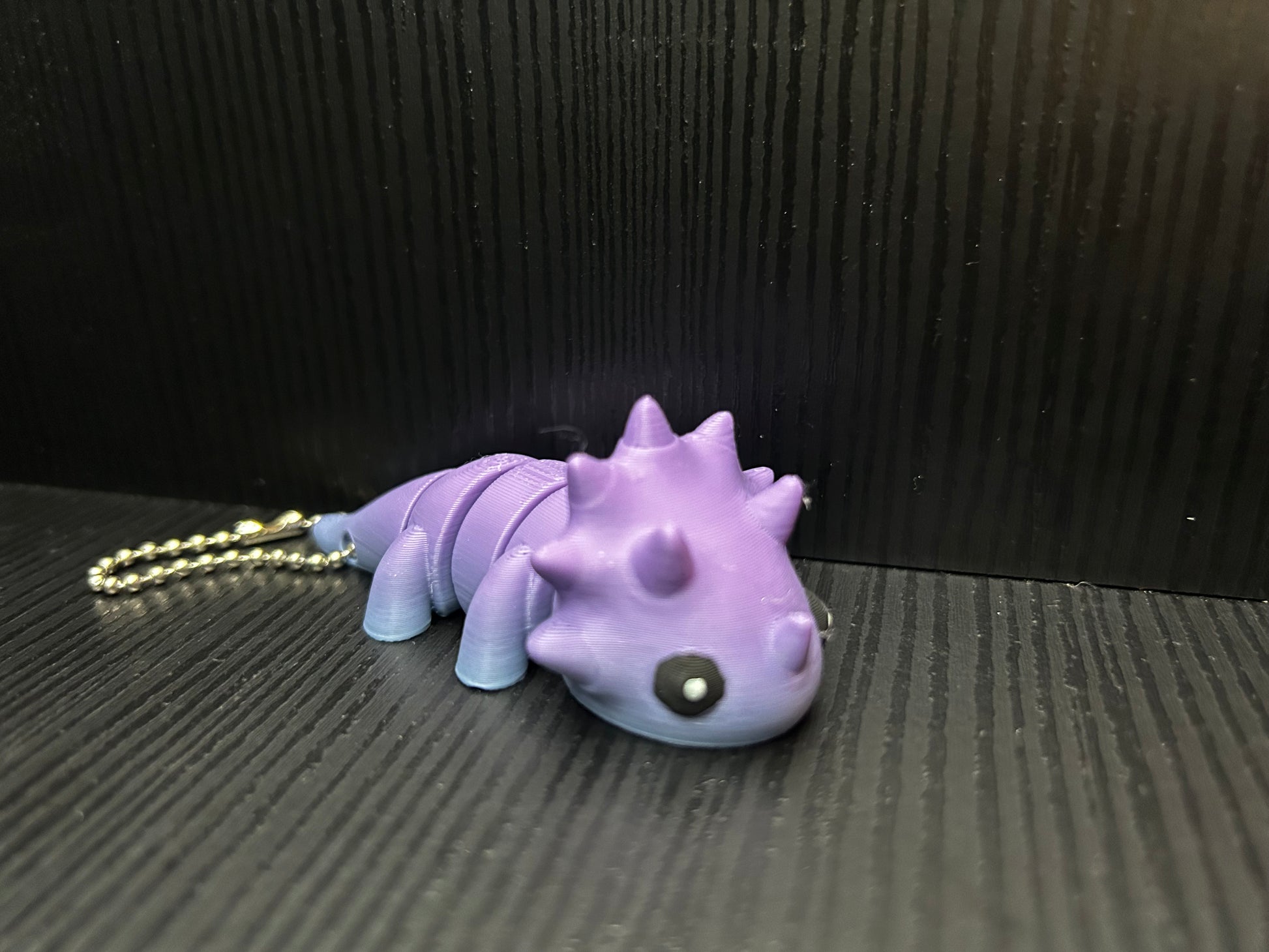 Elevate your everyday style with our Articulated Triceratops Keychain! Made with 3D printing technology, this keychain features a cute and intricate design that will surely add a unique touch to your keys. Expertly crafted for durability and charm, it's a must-have for any dinosaur lover.