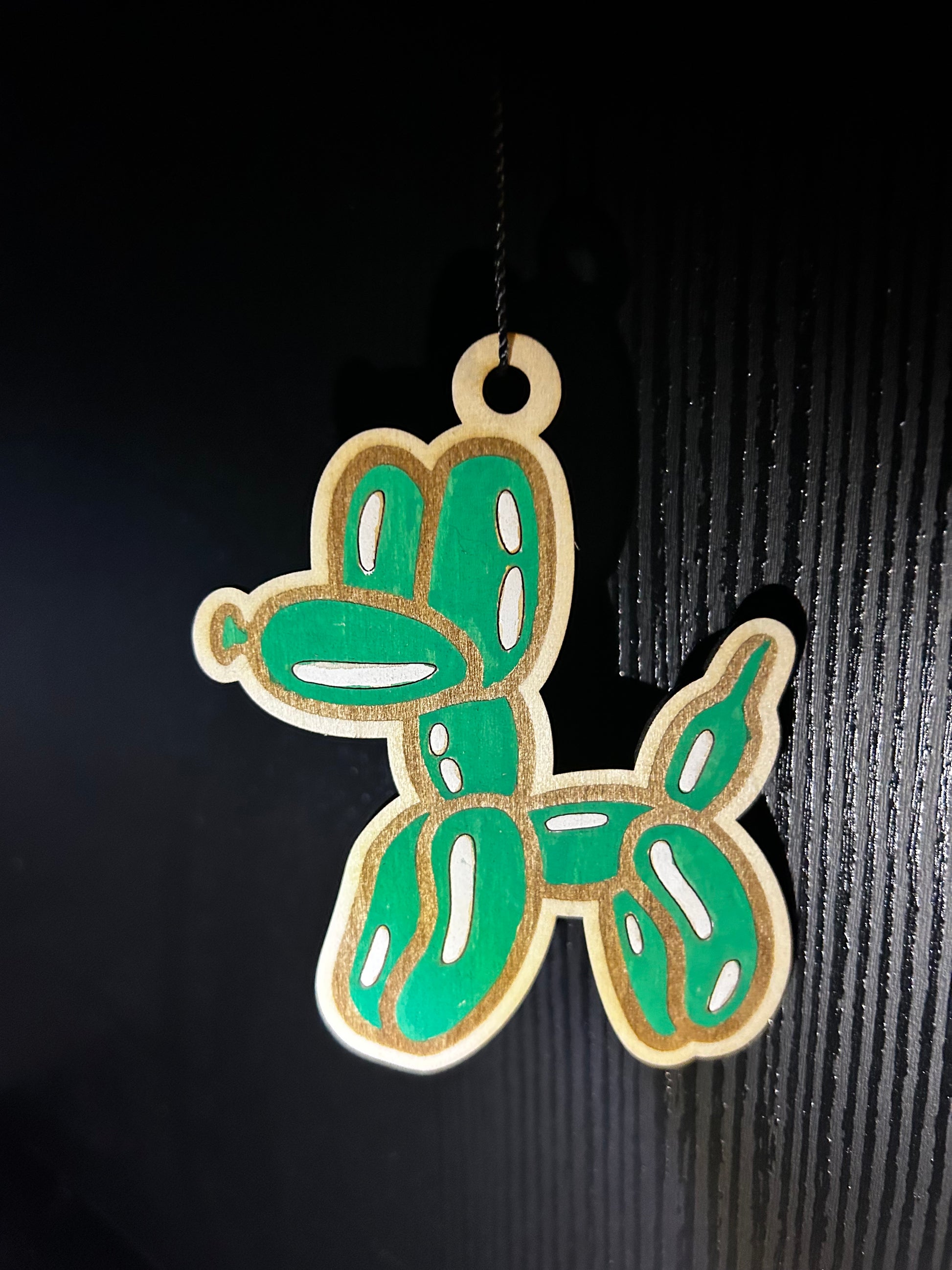 Expertly crafted from laser cut wood and hand painted, the Balloon Animal Ornament is a unique addition to your holiday decor. With precise detailing and a charming design, this ornament is sure to add a touch of whimsy and elegance to your tree.