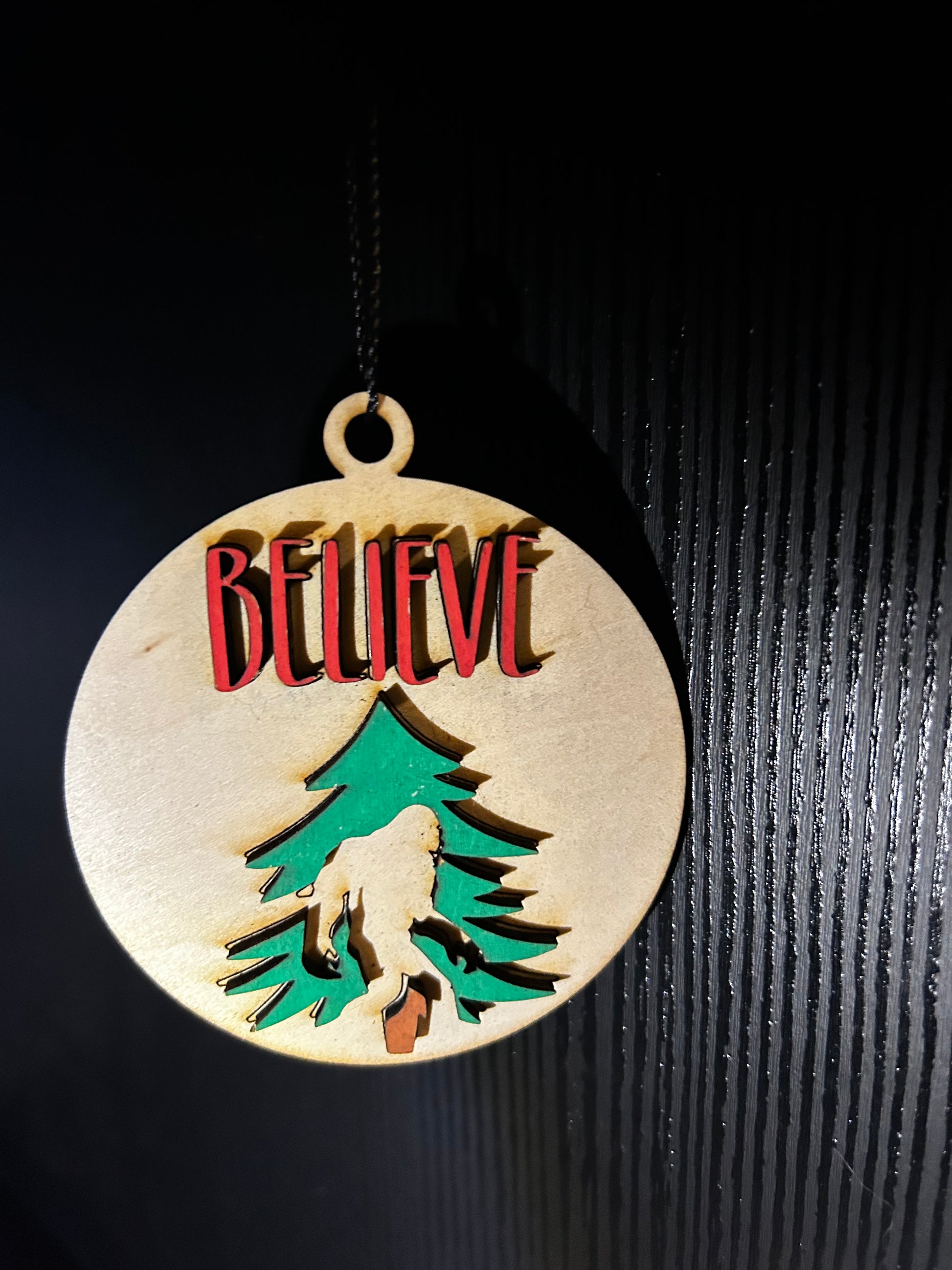 Expertly handcrafted from laser cut wood and hand painted, the Believe Sasquatch ornament is a unique and charming addition to any holiday decor. Its intricate details and high-quality craftsmanship make it a must-have for any Bigfoot enthusiast or nature lover. Embrace the mystery and magic of the wilderness with this one-of-a-kind ornament.