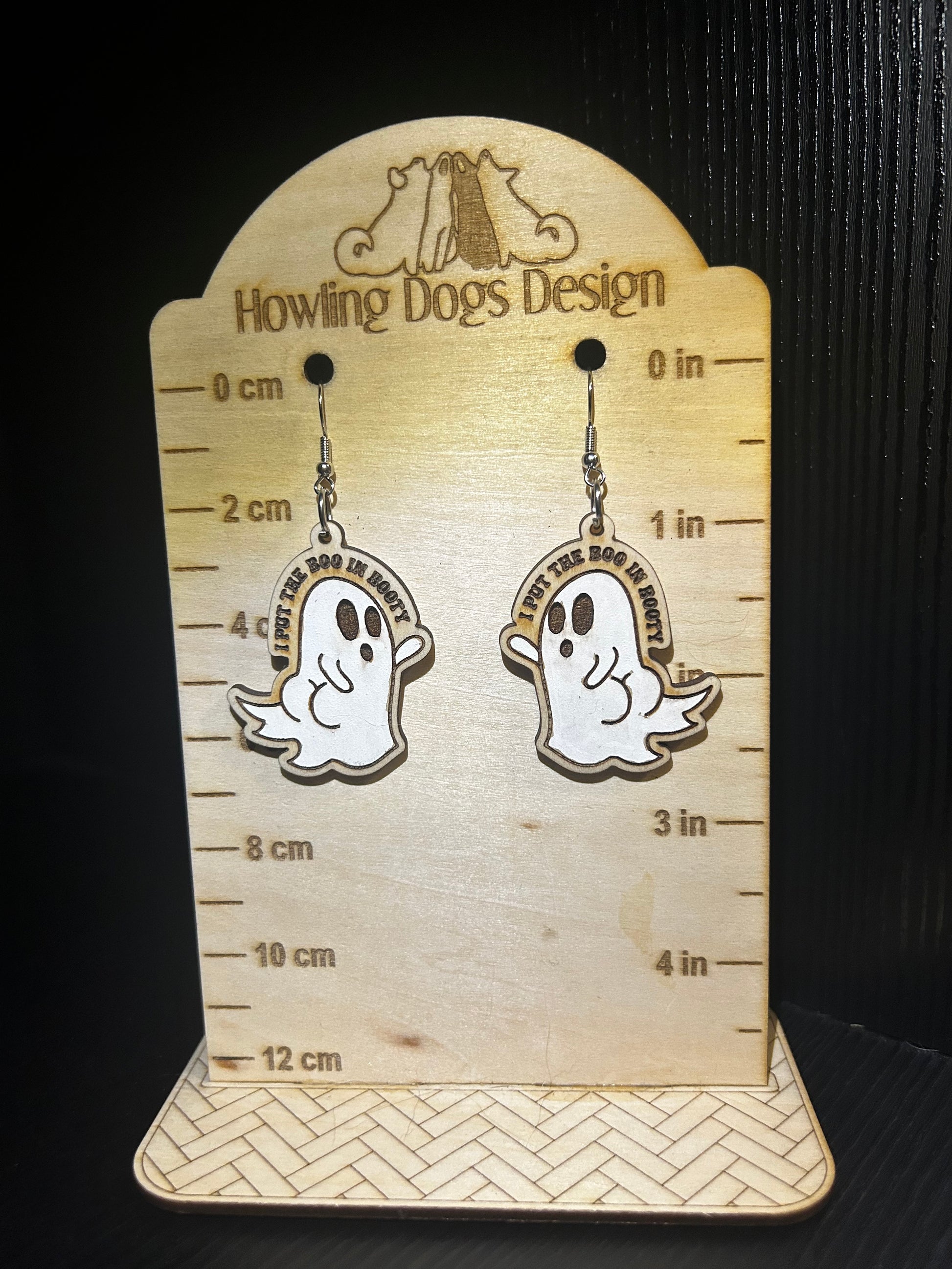 Enhance your Halloween outfit with our Boo in Booty Ghost Earrings. Made from laser cut wood and hand painted, these earrings are the perfect combination of spooky and stylish. Don't miss out on this unique accessory that is sure to turn heads and add a touch of whimsy to your look.