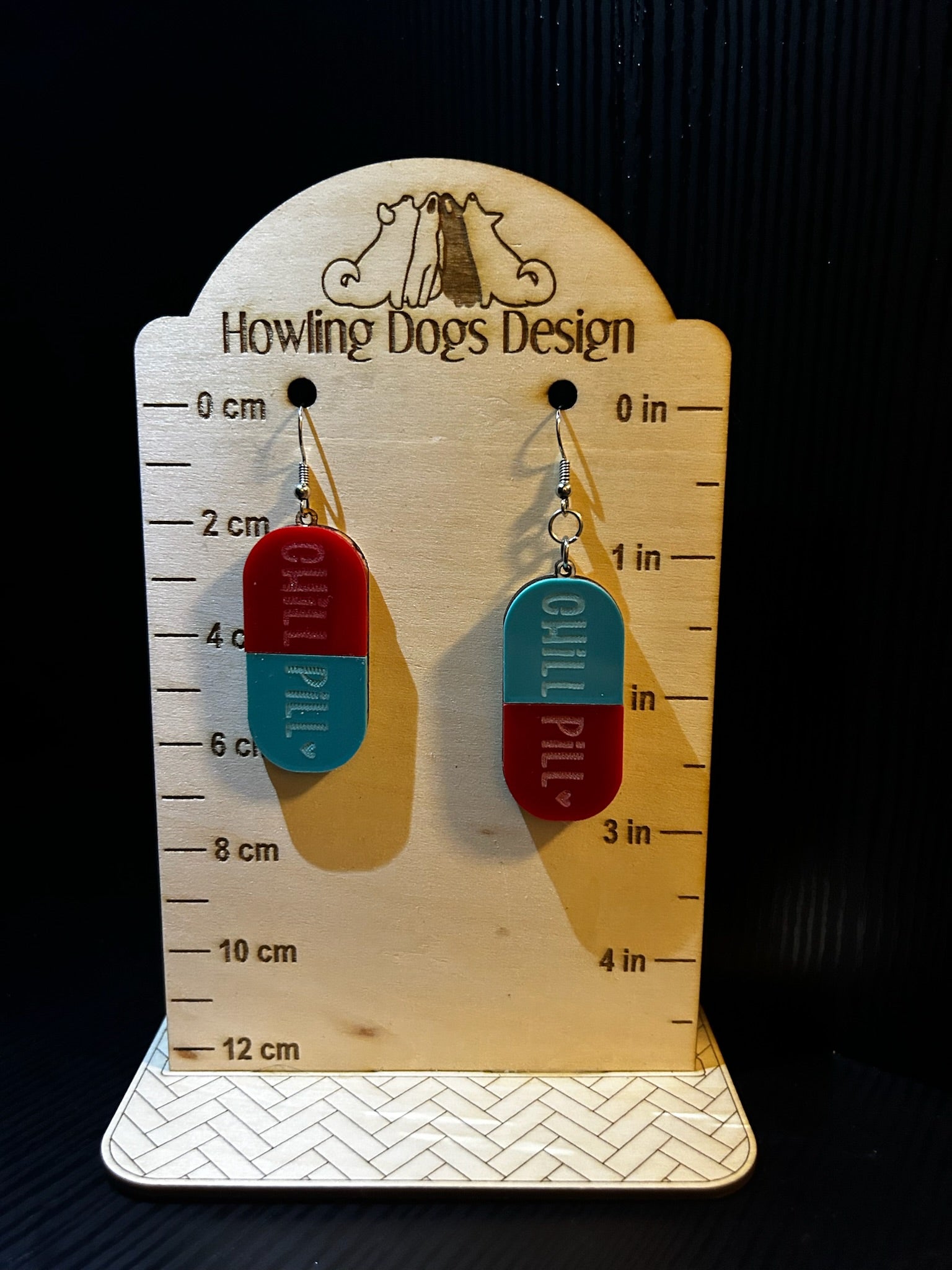 Elevate your accessory game with our Chill Pill Earrings. Made from laser cut wood and acrylic, these unique earrings are a playful way to add a touch of whimsy to any outfit. Perfect for those who love to stand out and embrace their fun-loving side.
