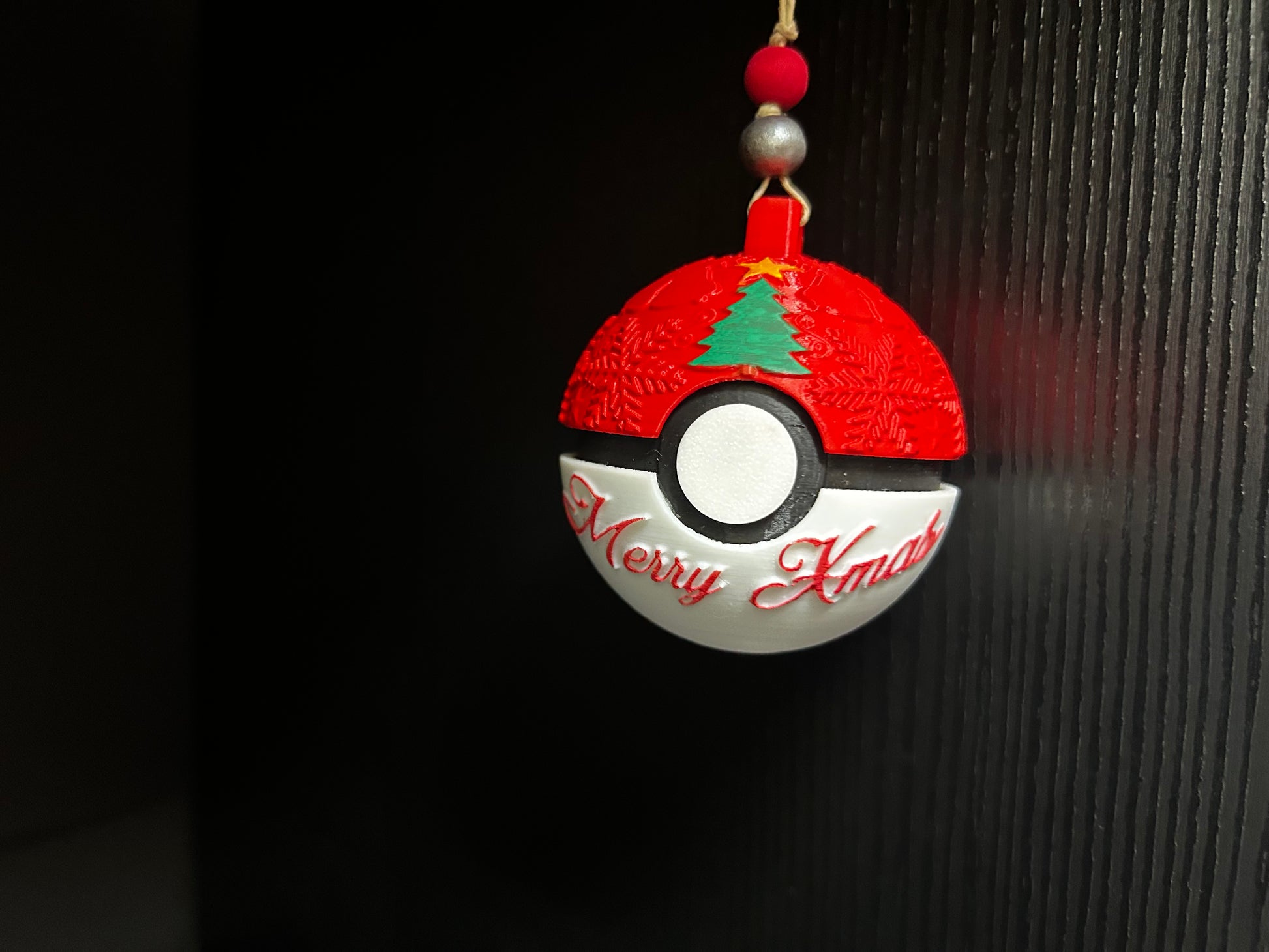 Introducing our Christmas Pokeball ornament! Made with high-quality 3D printing technology, this ornament is a must-have for any Pokemon fan. Add a touch of magic to your holiday decor with this unique and stylish piece. Catch it while supplies last!