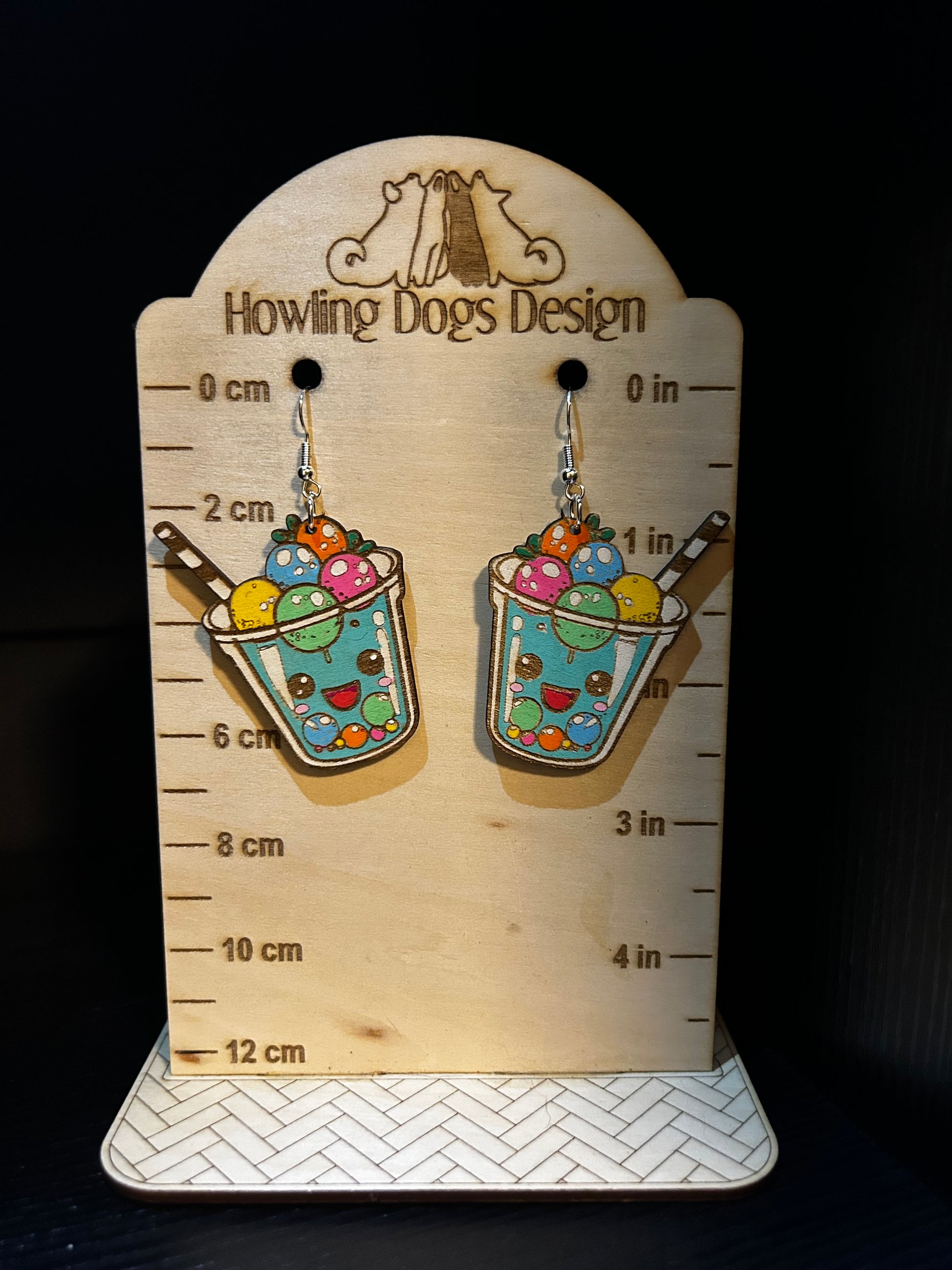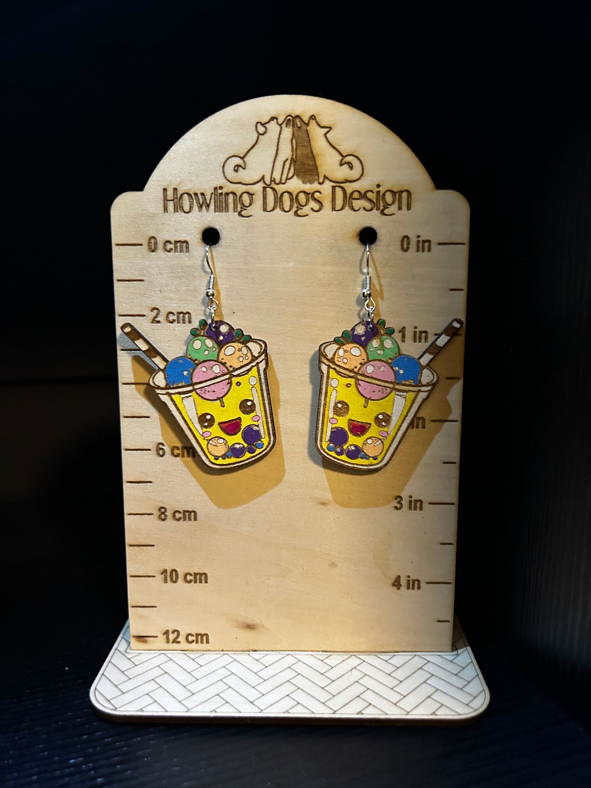 Add some adorable style to your outfit with our Cute Boba Earrings! Made from laser cut wood and hand painted, these earrings are perfect for any boba lover. Lightweight and unique, they make the perfect accessory for any occasion.
