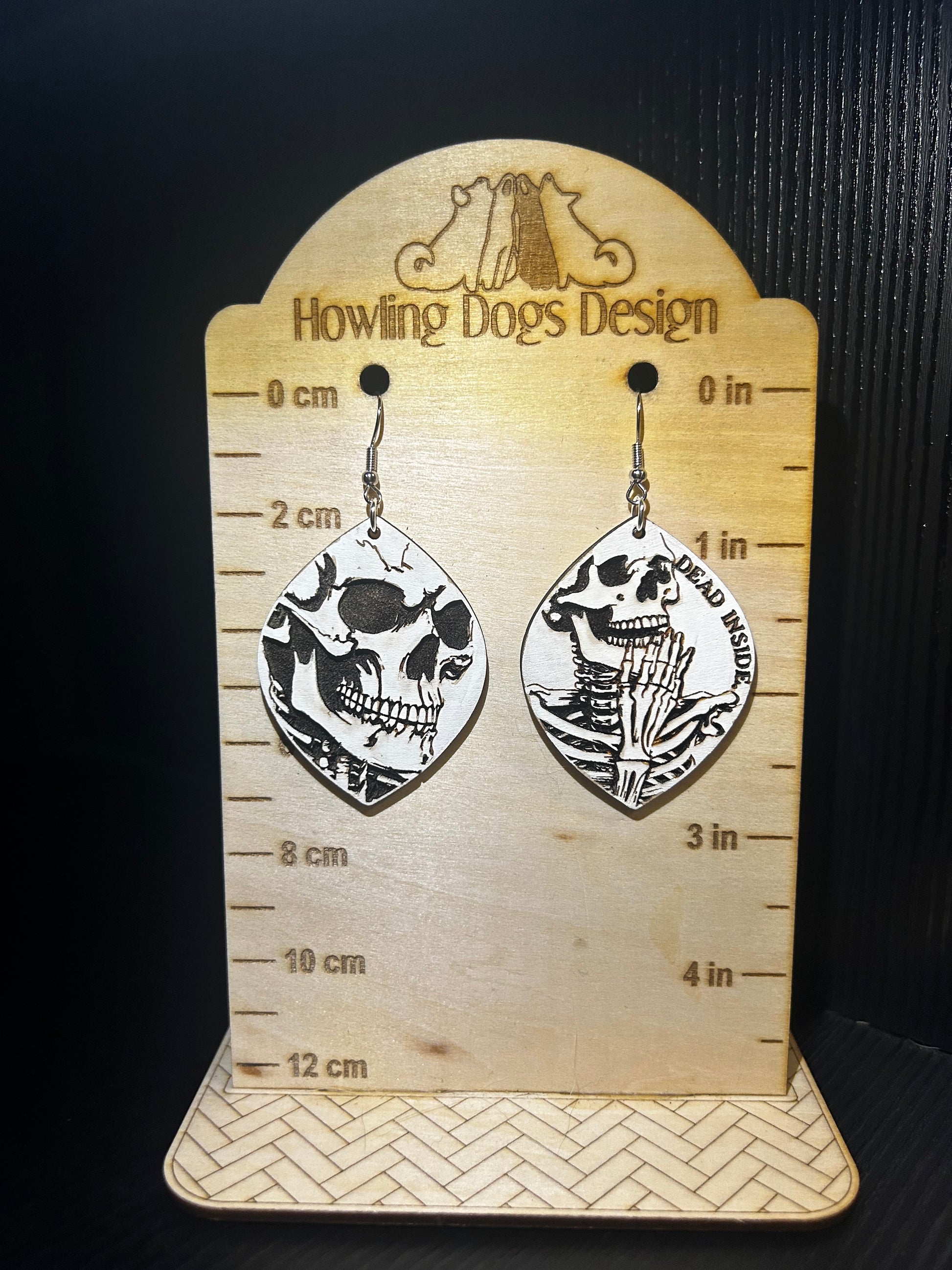 Expertly handcrafted and intricately designed, our Dead Inside Skeleton Earrings are a unique addition to any outfit. Made with laser cut wood and carefully hand painted, these earrings offer a touch of dark elegance with their detailed skeleton design. Elevate your style with these statement pieces.