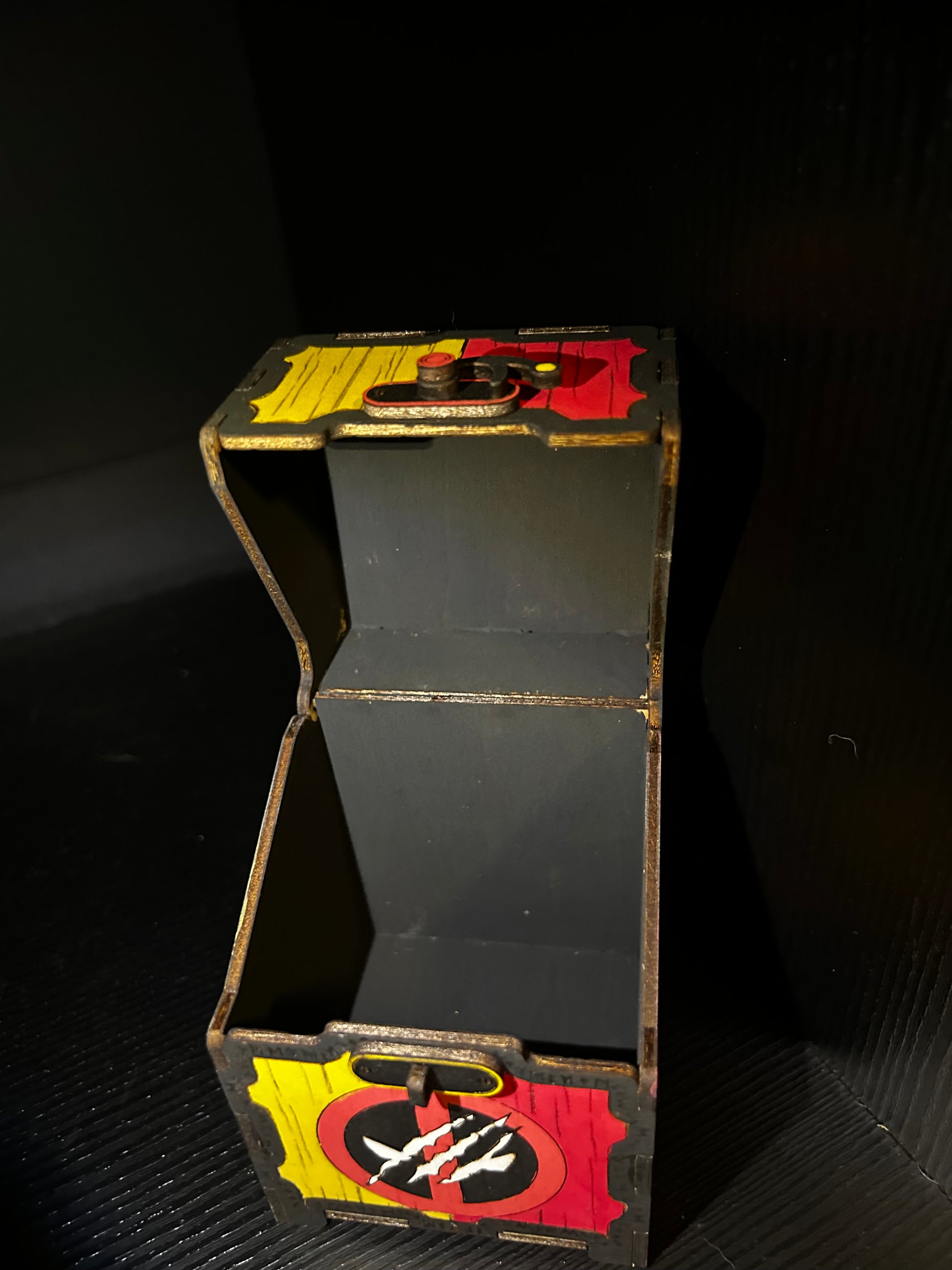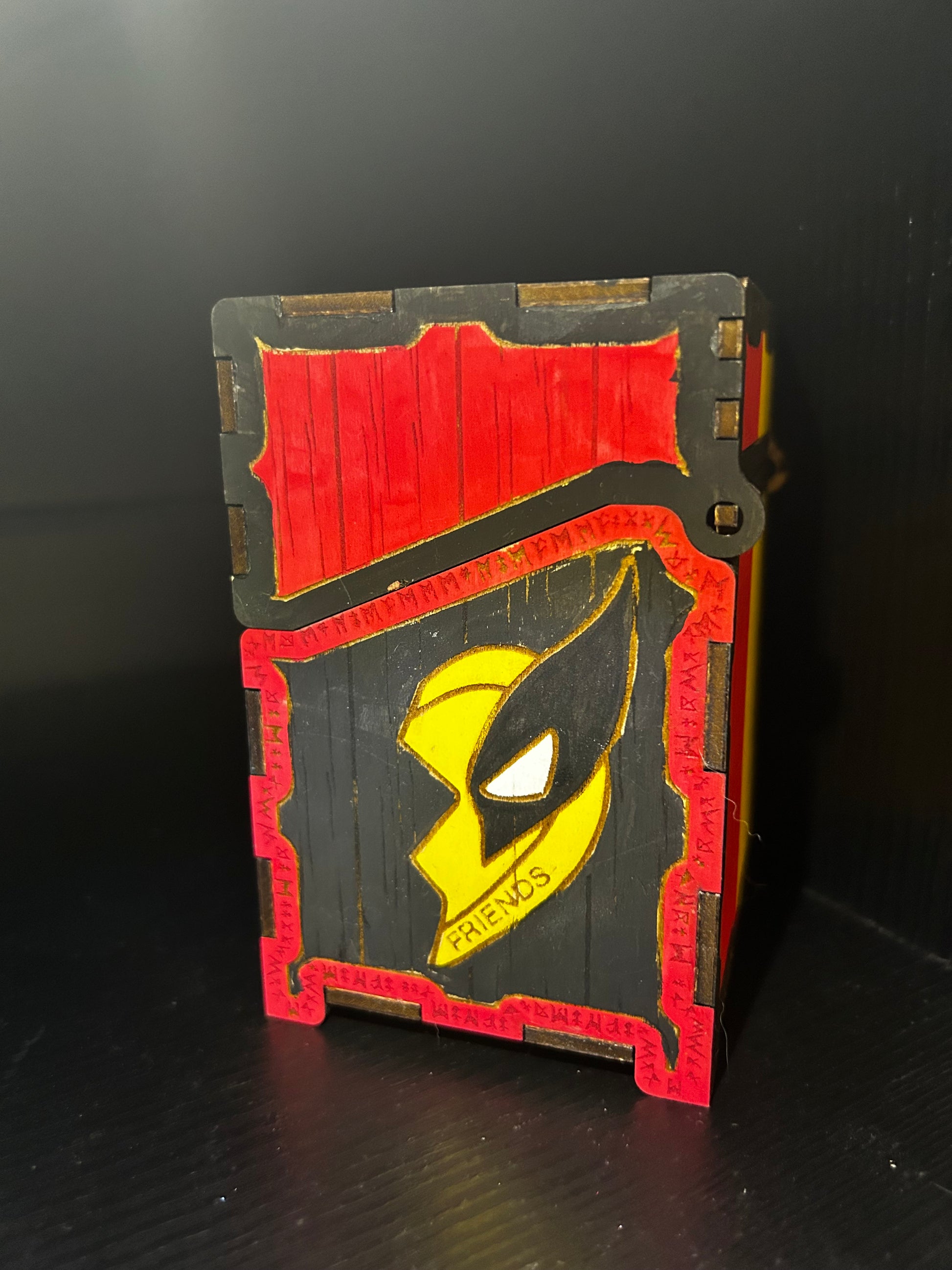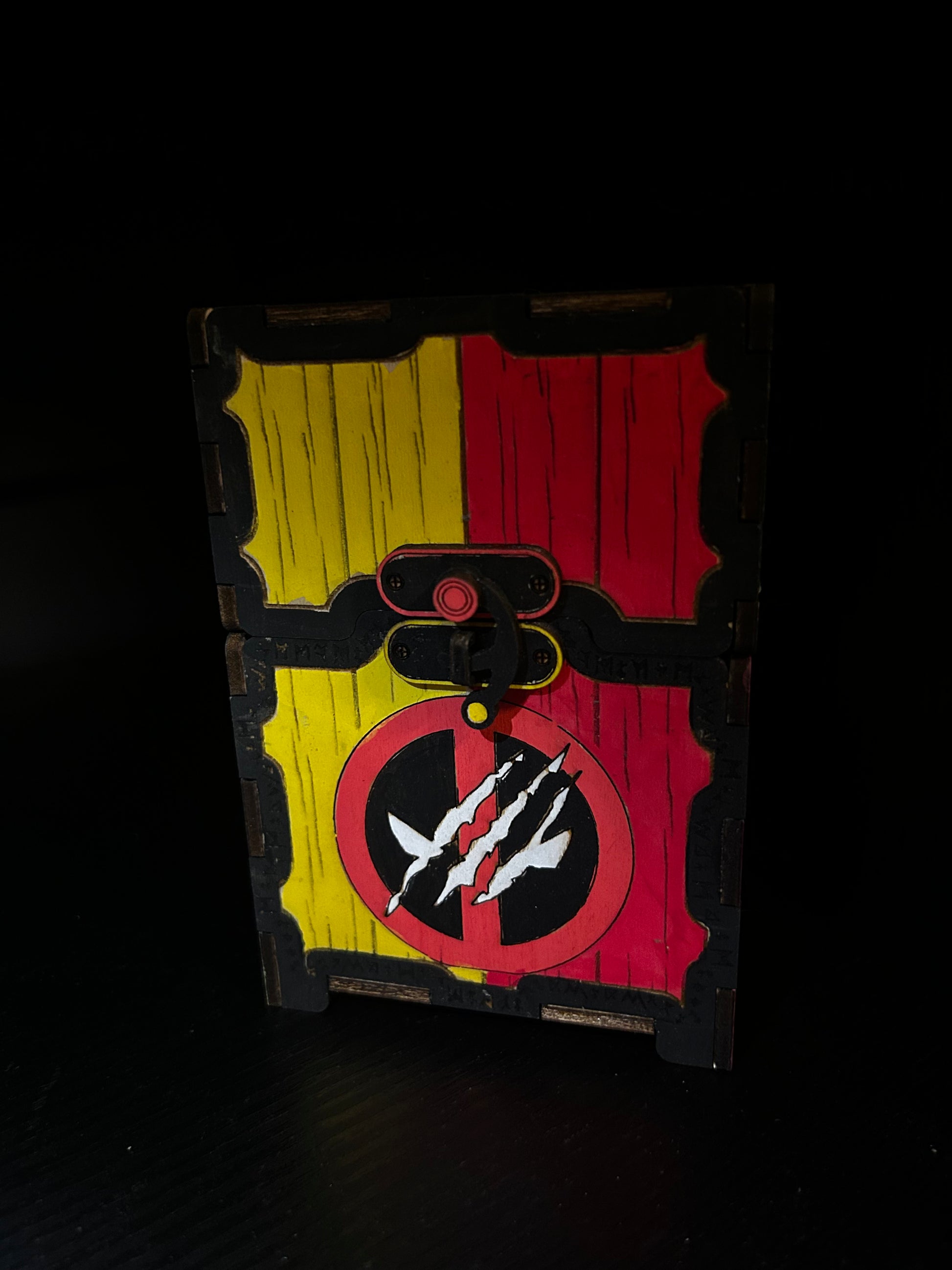 Introducing the Deadpool Wolverine Deck Box - the perfect accessory for any card game enthusiast! Made from laser cut wood and hand painted, this deck box combines style and practicality. Safely store and carry your cards while showcasing your love for Deadpool and Wolverine. Elevate your gaming experience today.