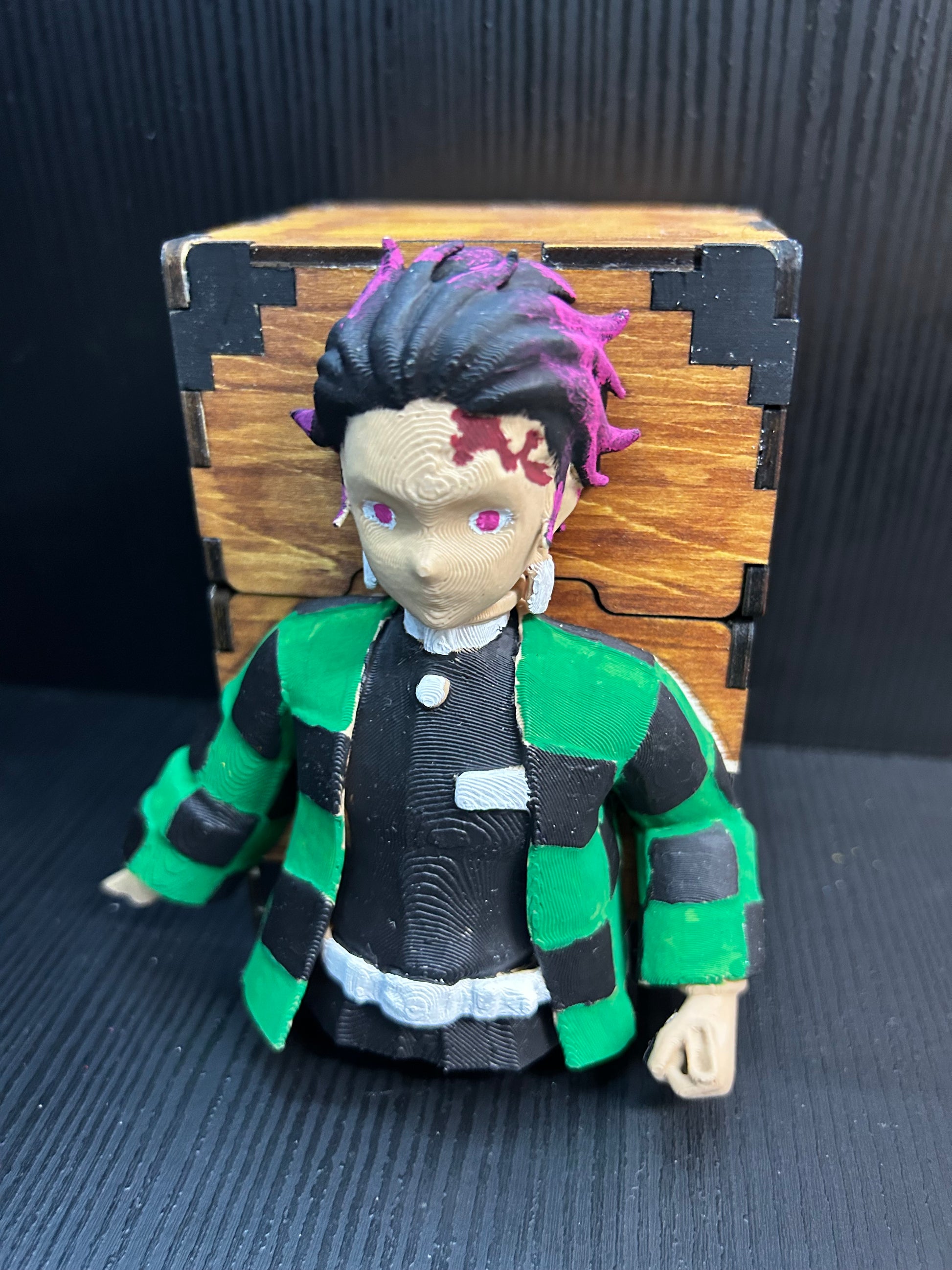 Introducing the Demon Slayer Tanjiro Deck Box, featuring a laser-cut wood design of Tanjiro carrying Nezuko's box on his back. Hand-painted with stunning 3D printed features, this deck box is both functional and visually striking. Protect your cards in style with this must-have for any Demon Slayer fan.