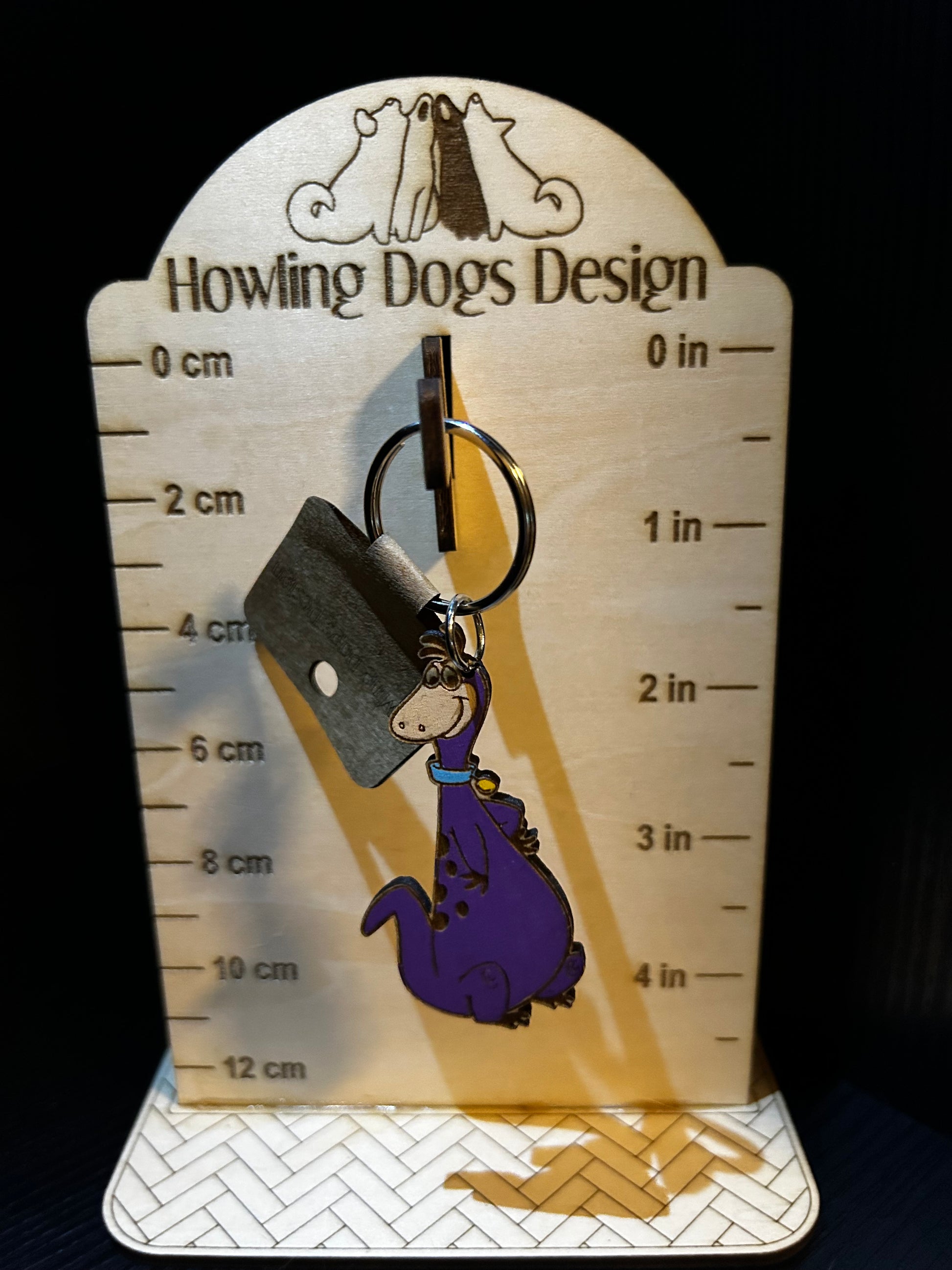 Expertly crafted and painted by hand, the Dino Flintstone keychain is a must-have for any fan of the beloved cartoon. Made from laser cut wood, this keychain features intricate details that bring Dino to life. Add a touch of nostalgia to your keys with this unique and high-quality accessory.