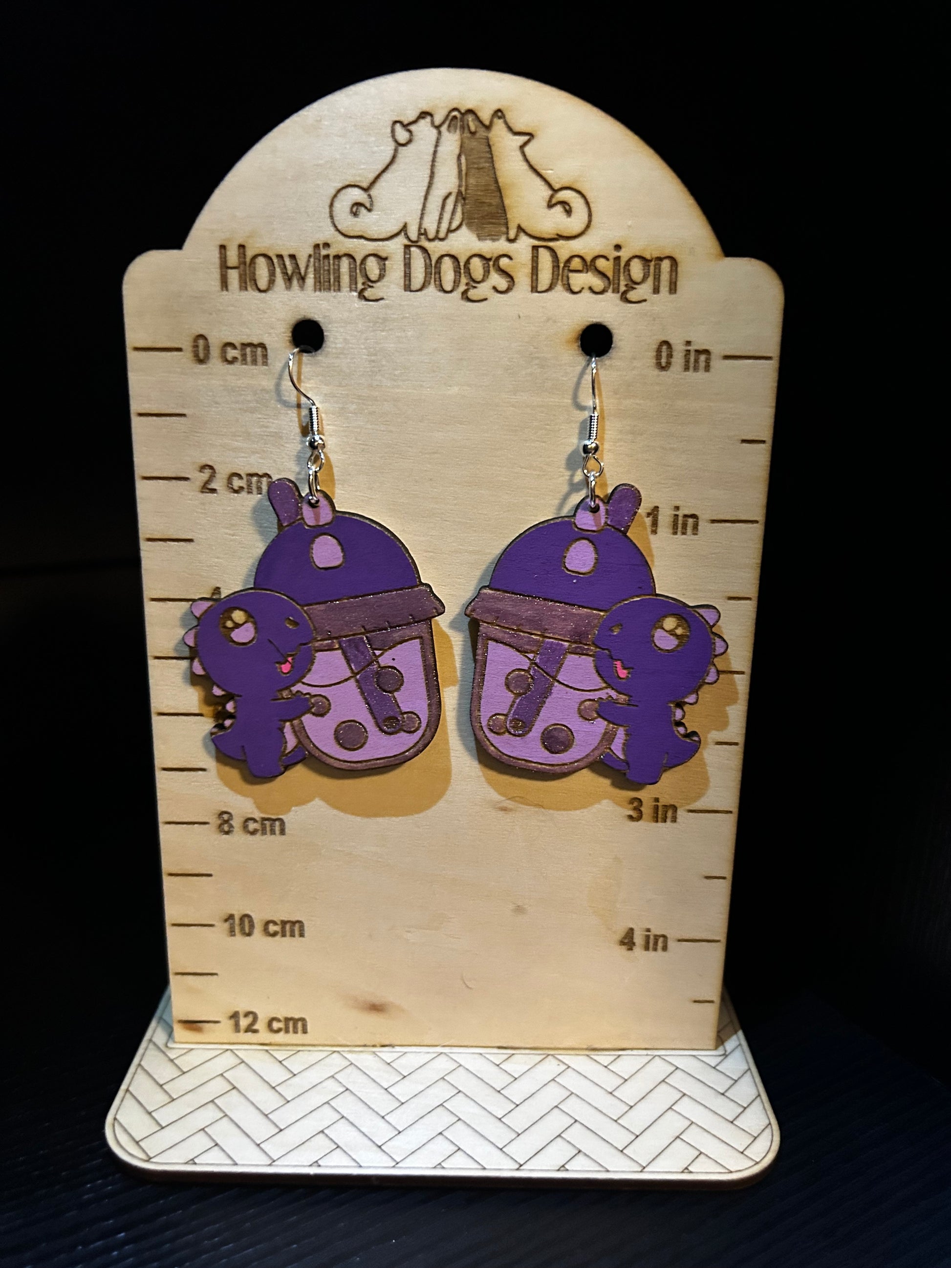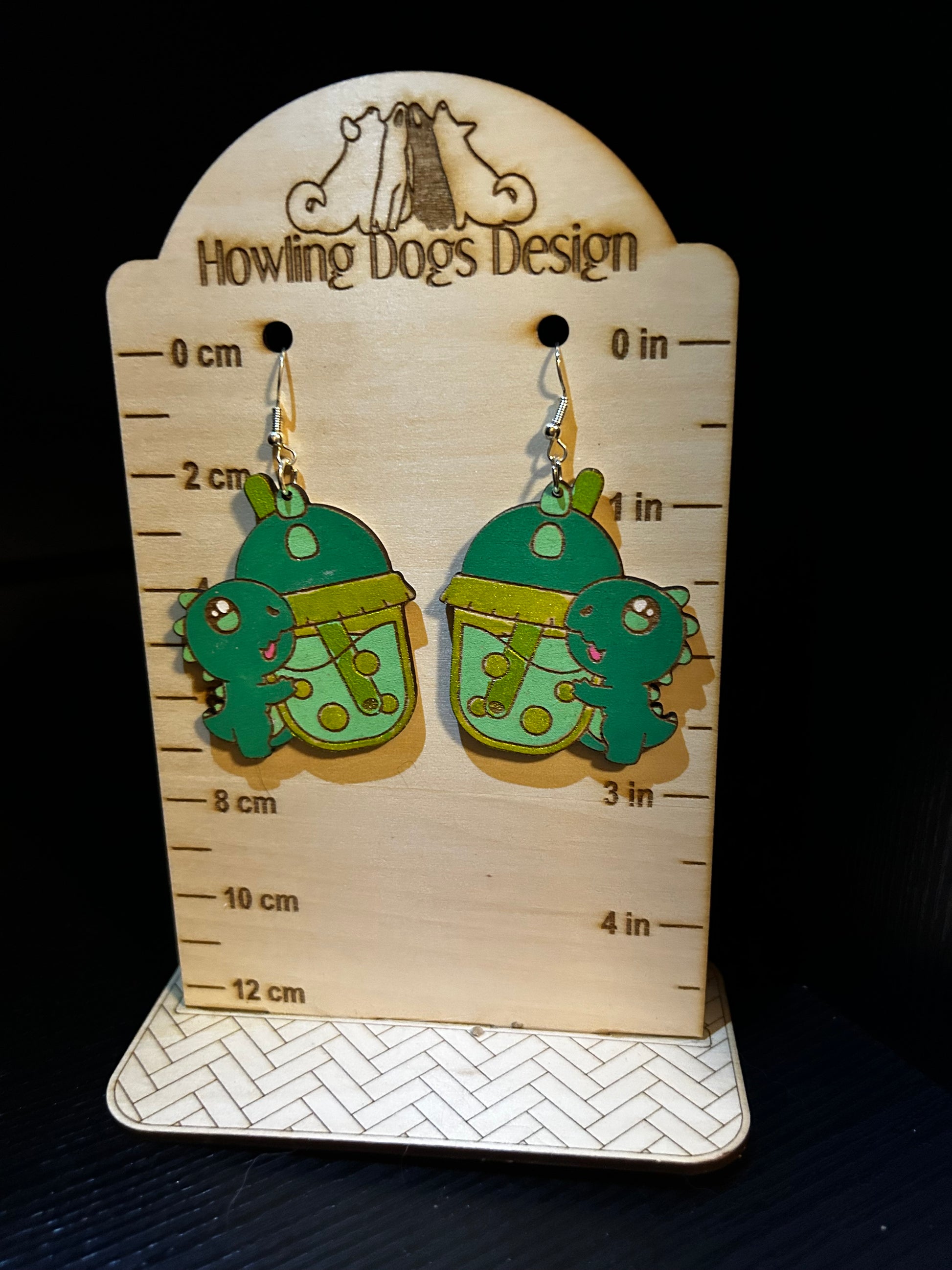 Introducing Dinosaur Boba - the perfect combination of playful and practical. This laser cut wood dinosaur holds a big cup of boba, hand painted for added charm. Made with precision and durable materials, it's a unique and fun addition to any kitchen or office space.
