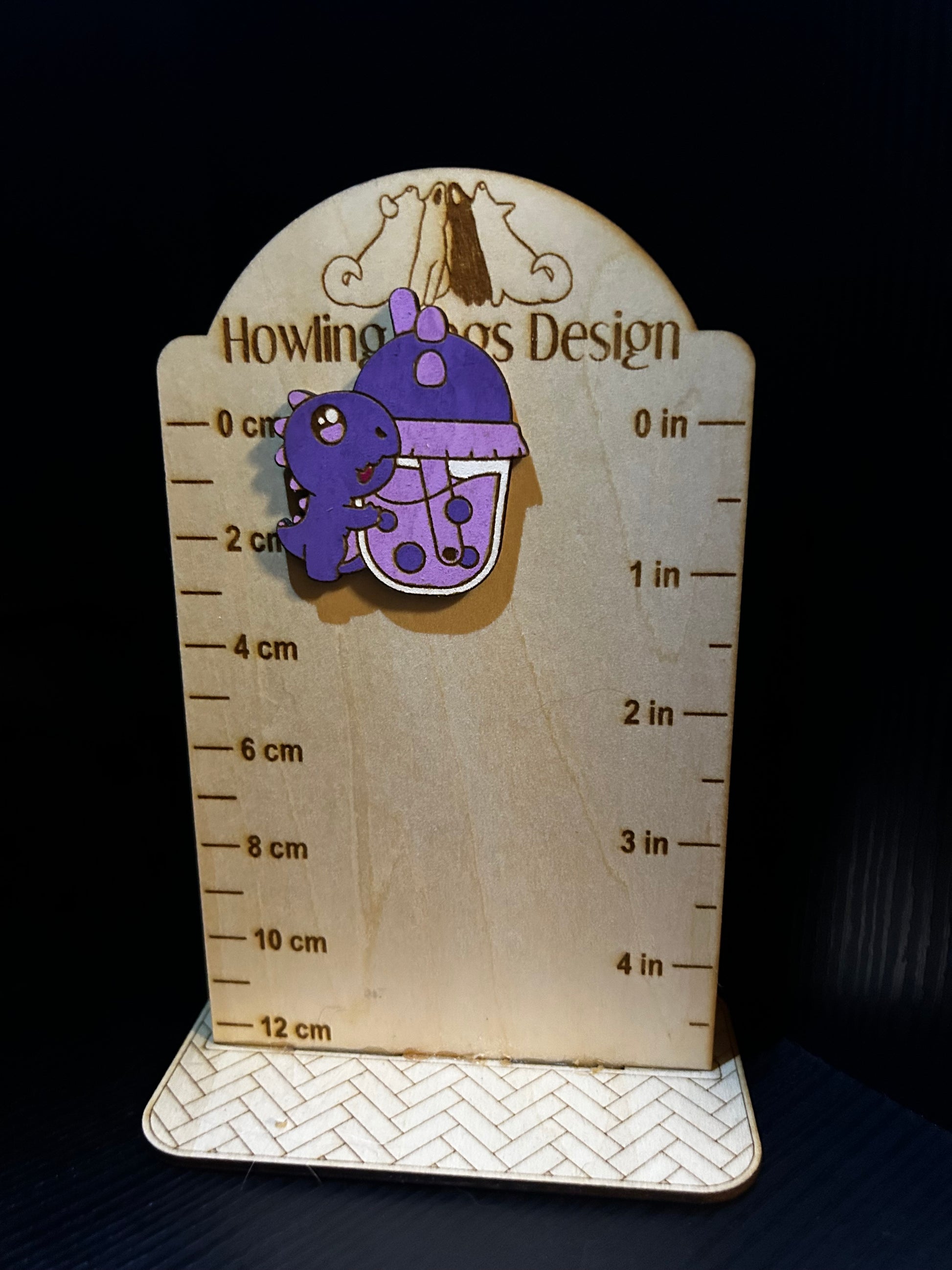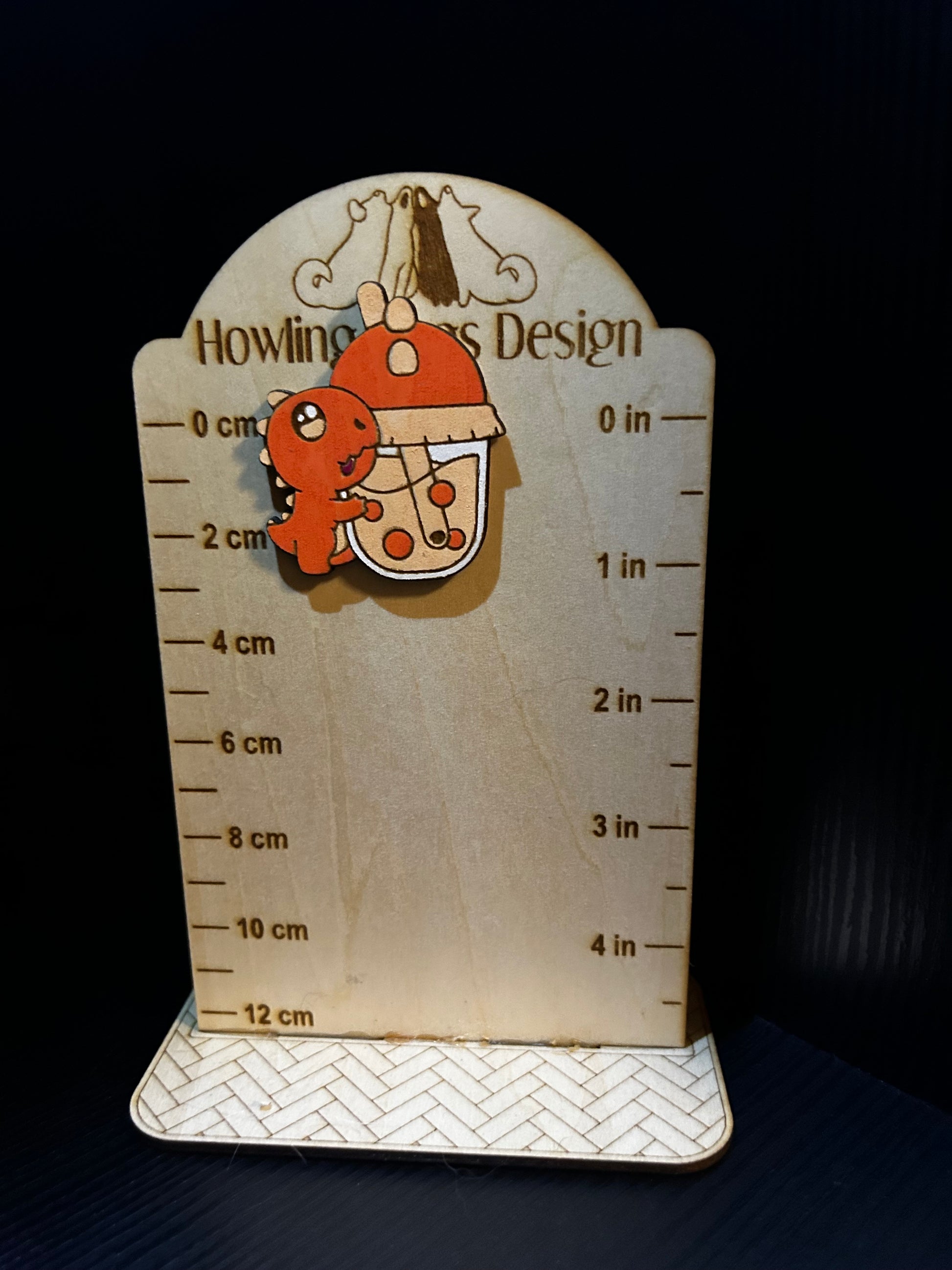 Crafted from laser-cut wood and hand-painted with intricate details, our Dinosaur Boba Pin is a must-have accessory for any boba lover. Featuring a playful and unique design, this pin is sure to add a touch of fun to your outfit. Made with high-quality materials, it's durable and long-lasting.