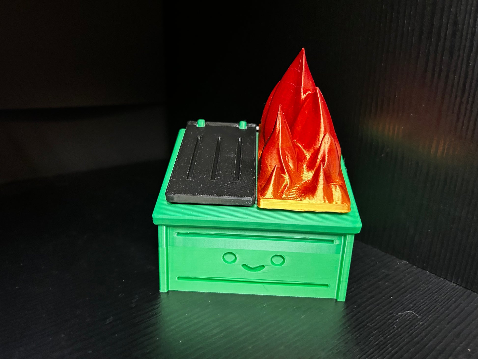 Organize your clutter with the Dumpster Fire storage box. The 3D printed design adds a touch of humor to your storage needs. Perfect for small items and a great conversation starter. Keep your space tidy while adding a touch of humor.