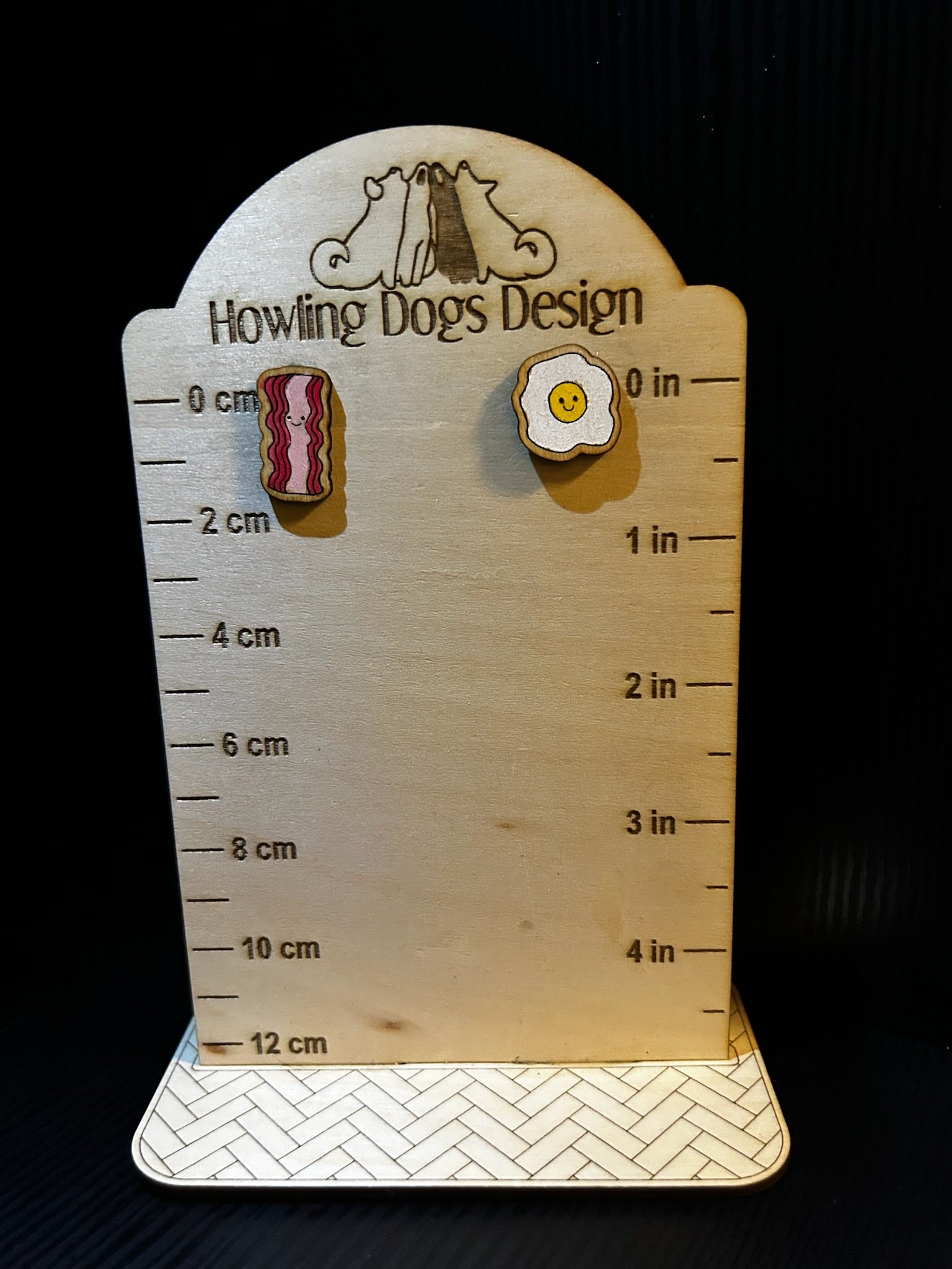 These hand-painted Egg and Bacon Earrings are a unique addition to any outfit! Made with laser-cut wood, these earrings are lightweight and stylish. Perfect for food lovers and those who appreciate quirky accessories.