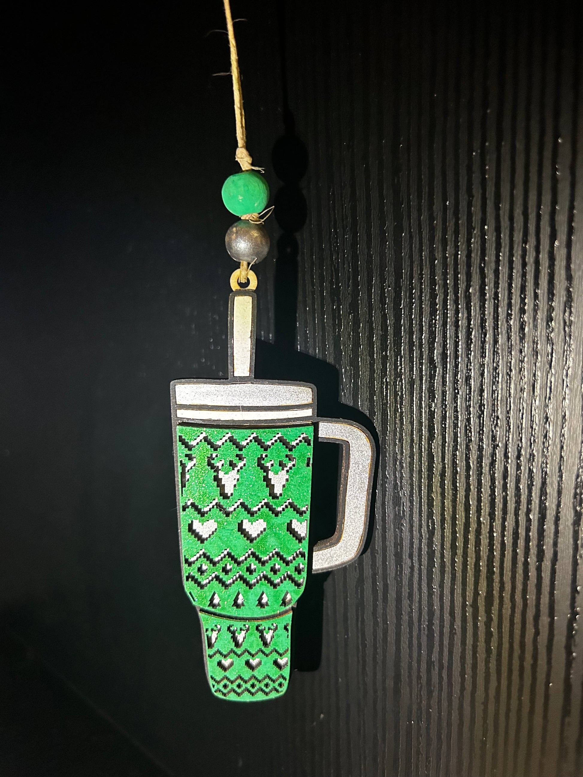 Hand painted Fair Isle Pattern Cup Ornament, crafted with precision using laser cutting technology. This intricate design captures the timeless beauty of traditional Fair Isle patterns. Add a touch of holiday cheer to your tree with this unique ornament.