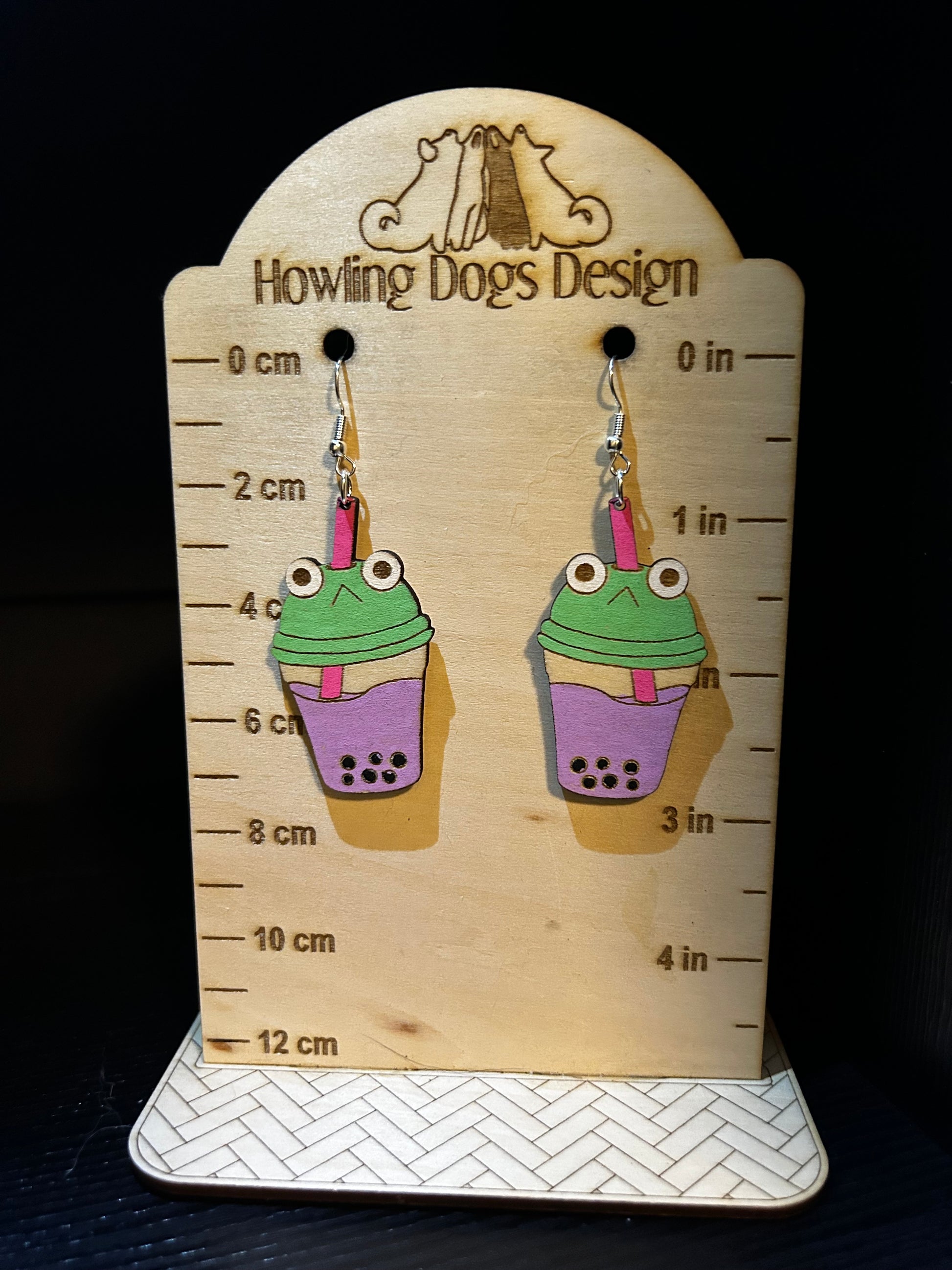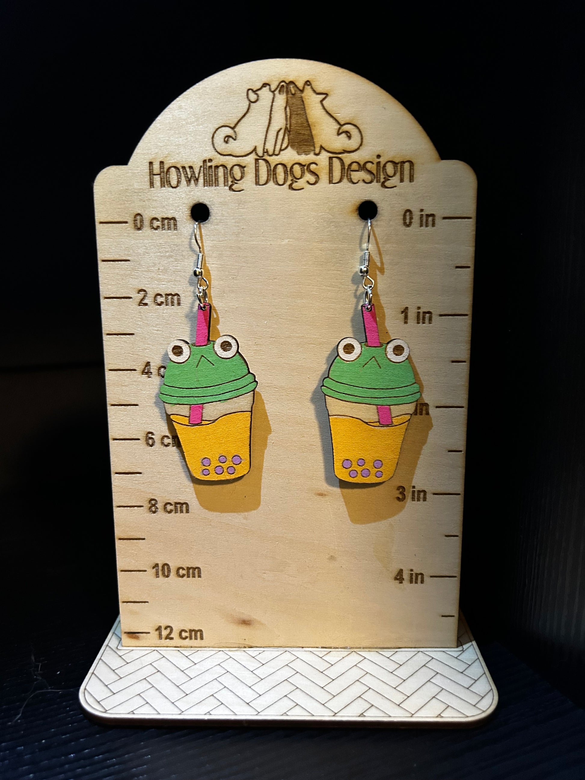 Elevate your outfit with Frog Boba Earrings. These unique laser cut wood earrings are perfect for any boba tea lover. Lightweight and stylish, these earrings will add a playful touch to your look.
