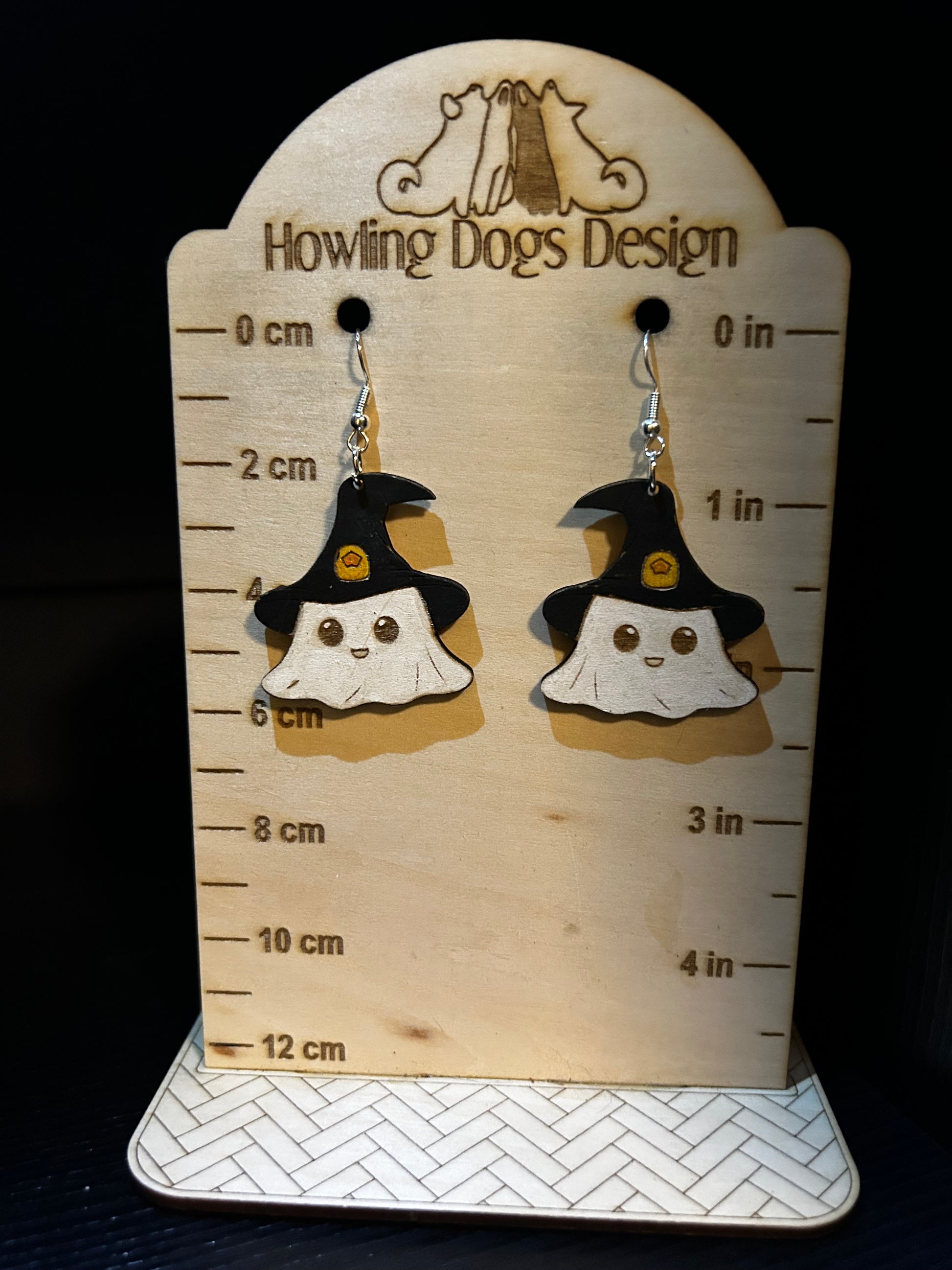 Add a spooky touch to your style with our Ghost Earrings. These laser cut wood earrings feature a ghost wearing a charming witch hat, hand-painted for a unique touch. Perfect for any Halloween lover or as a statement piece for your everyday look. Made with high-quality materials for long-lasting wear.