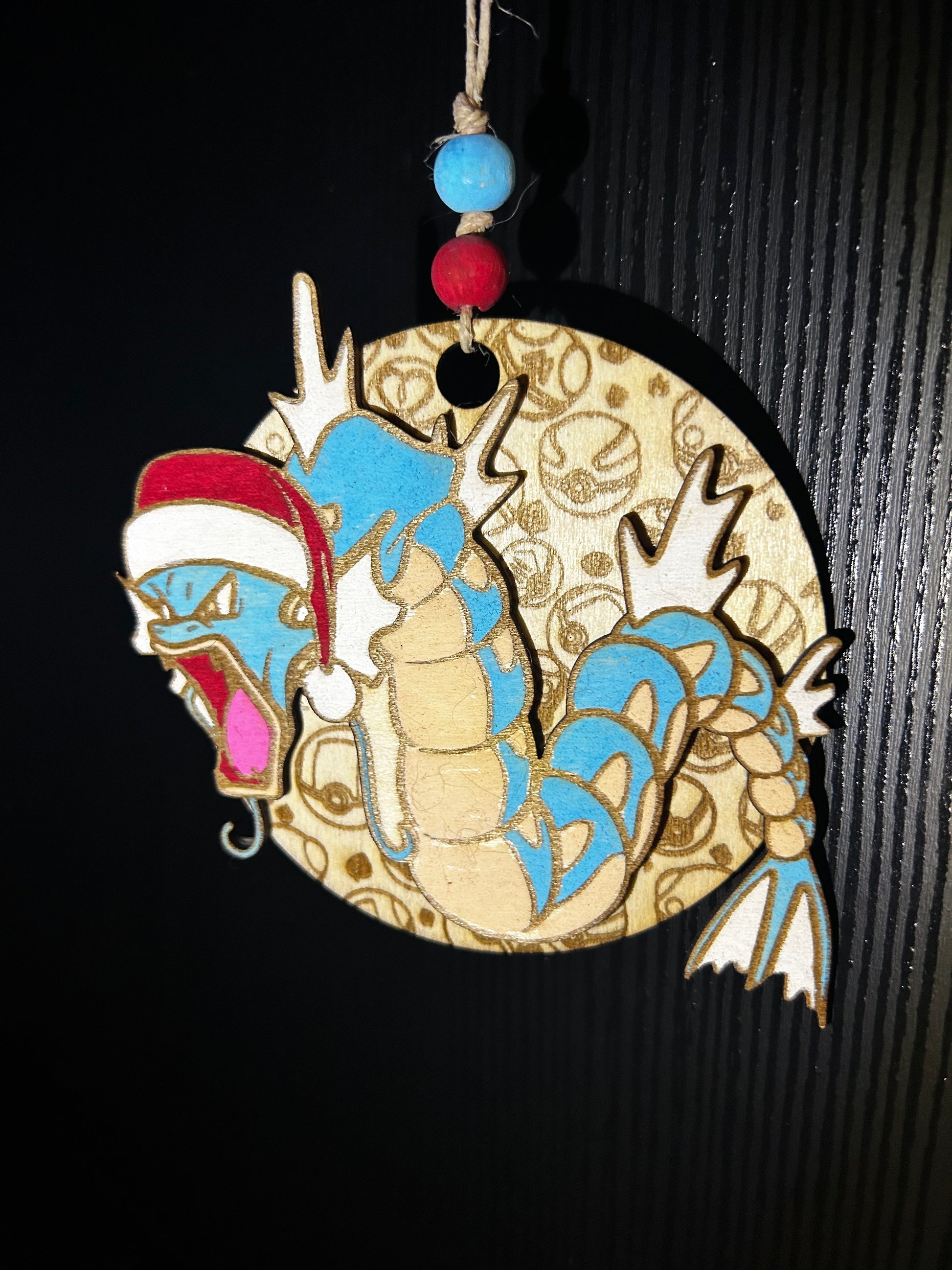 The Gyarados ornament is a must-have for any Pokemon fan. Made with laser cut wood and hand painted, it comes with the option of a Santa hat for added holiday cheer. Expertly crafted, this ornament is the perfect addition to your tree.