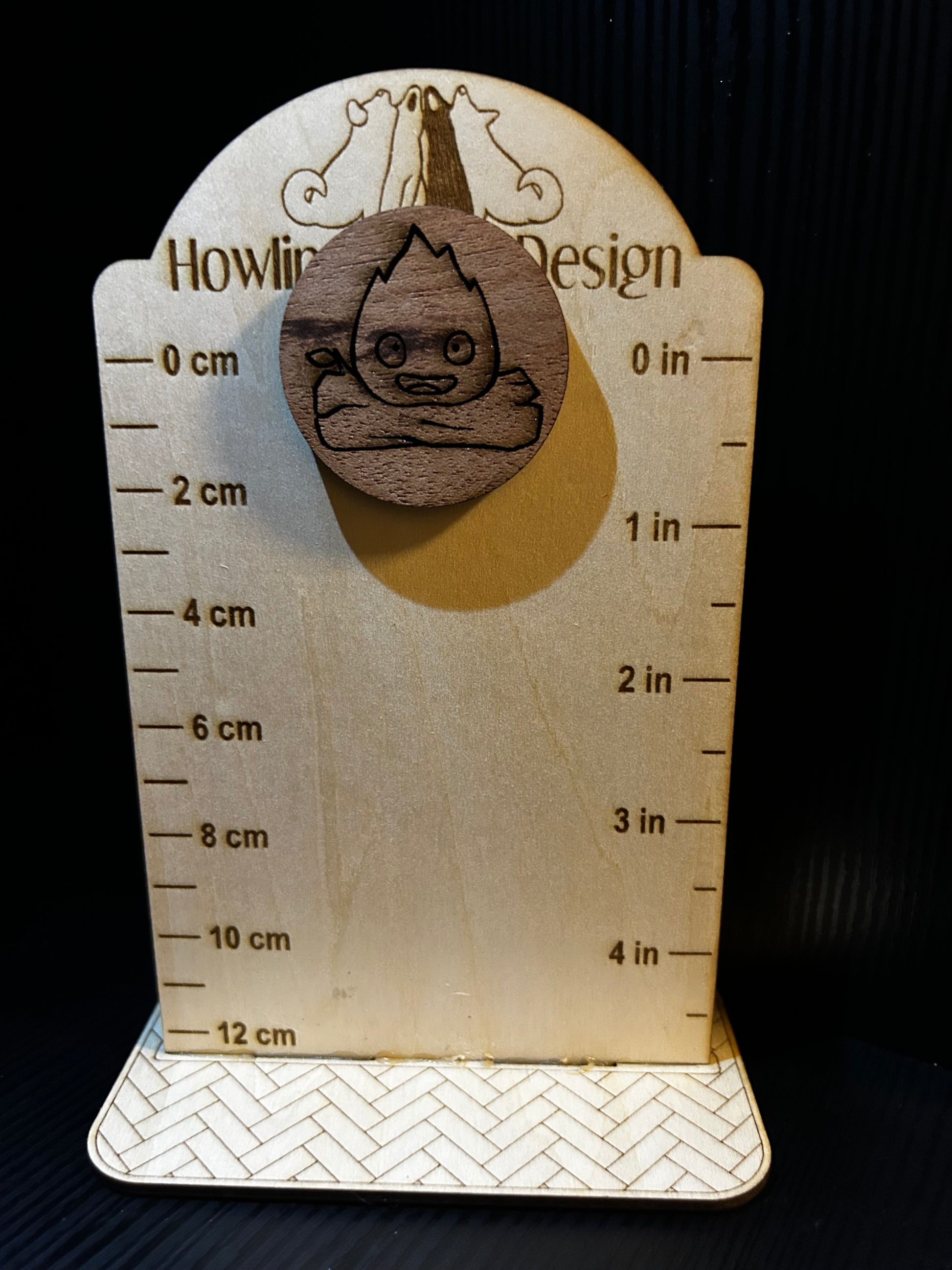 Experience the magic of Howl's Moving Castle with our Hardwood Calcifer Pin. Made from high-quality hardwood, this pin captures the essence of the iconic anime character with its intricate design. Collect and display this pin as a reminder of the film's enchanting story.