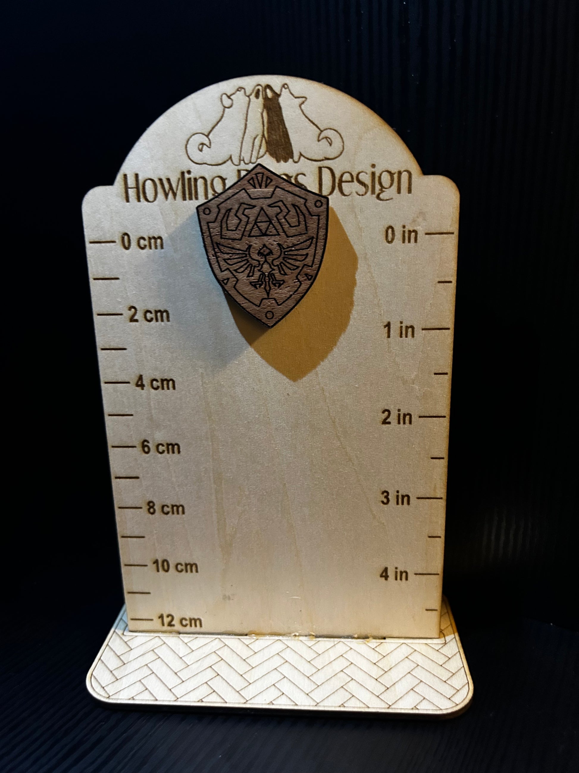 Enhance any outfit with our expertly crafted Hardwood Hyrule Shield Pin. Made from high-quality hardwood, this pin is a must-have for any fan of the legendary Legend of Zelda series. Display your passion in a subtle and refined way with this pin's intricate design and detailed craftsmanship.