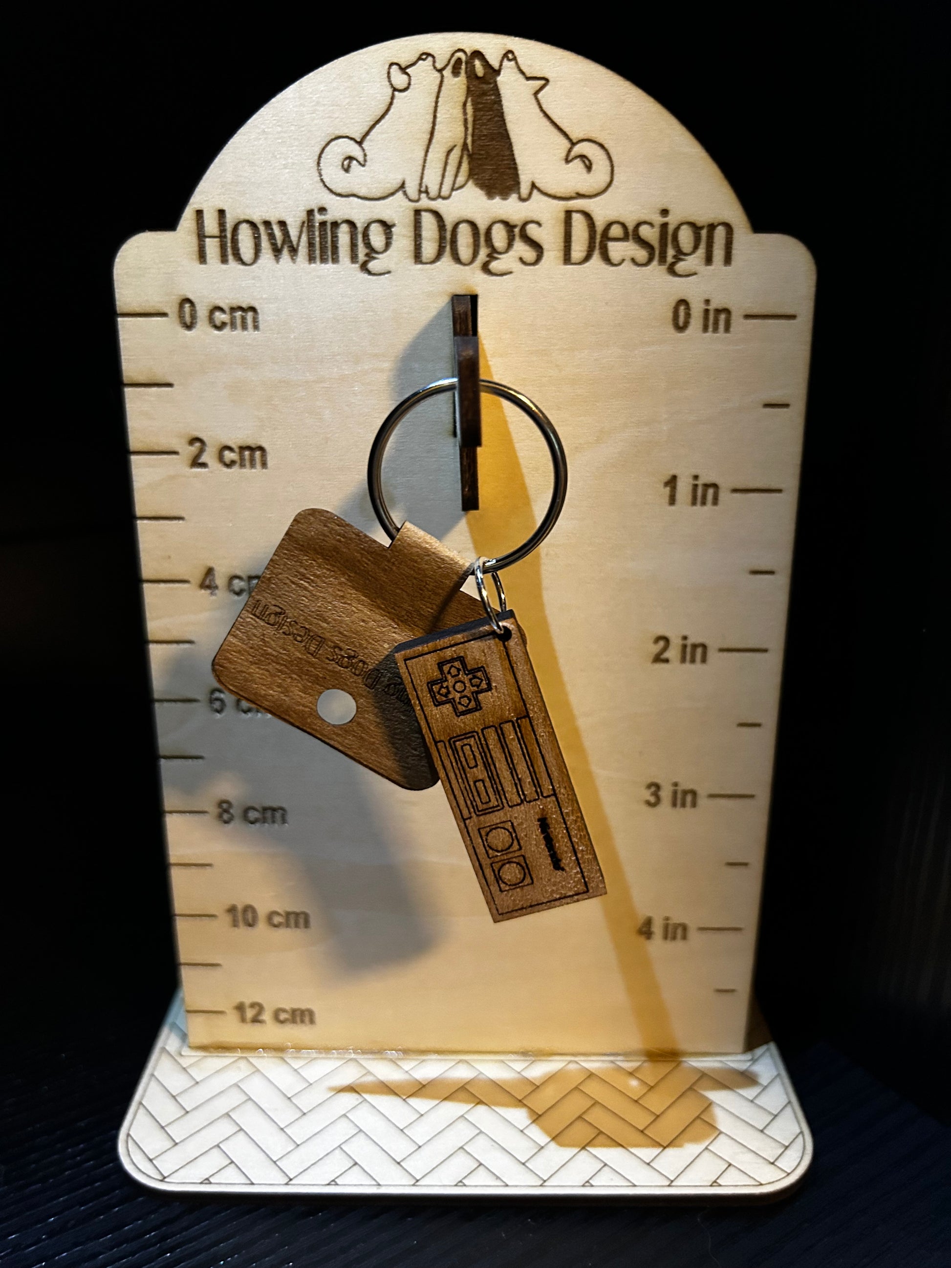 Enhance your gaming nostalgia with our Hardwood NES Controller Keychain. Crafted from durable hardwood using laser cut technology, this keychain is a miniature replica of the iconic NES controller. Perfect for die-hard fans and gamers, this keychain is a unique accessory that showcases your love for classic gaming.