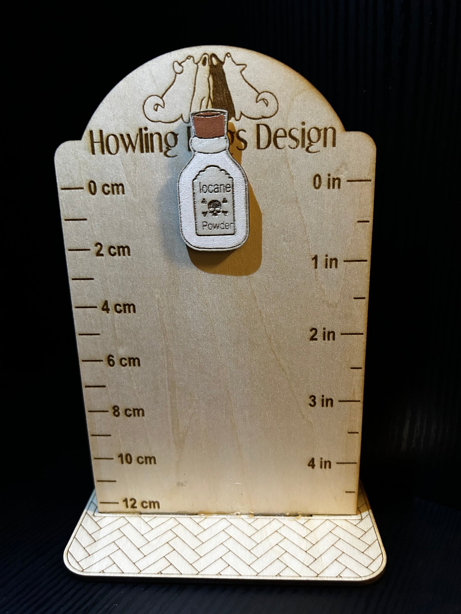 Introducing the Iocane Powder Pin, a must-have for any true fan of The Princess Bride. Made with Iocane powder, this pin is a unique collectible that adds a touch of mystery and intrigue to any outfit. Only available for a limited time, so get yours now!
