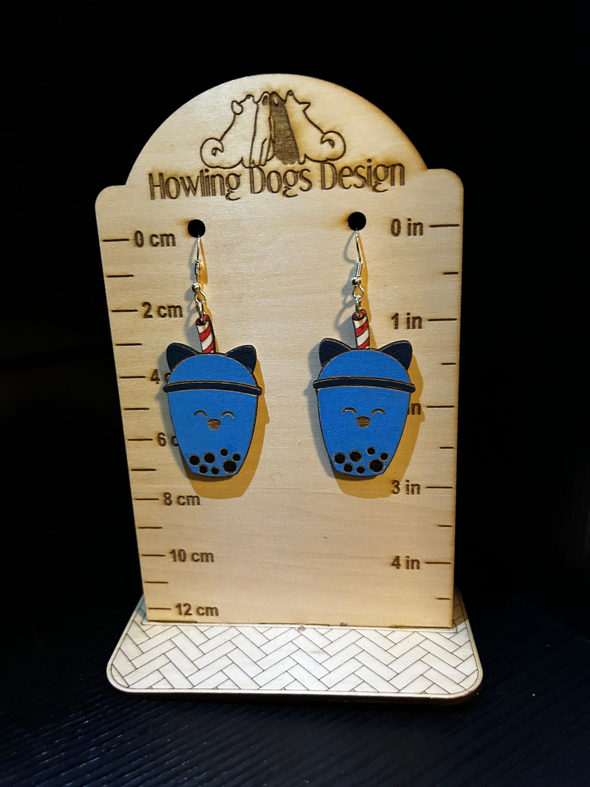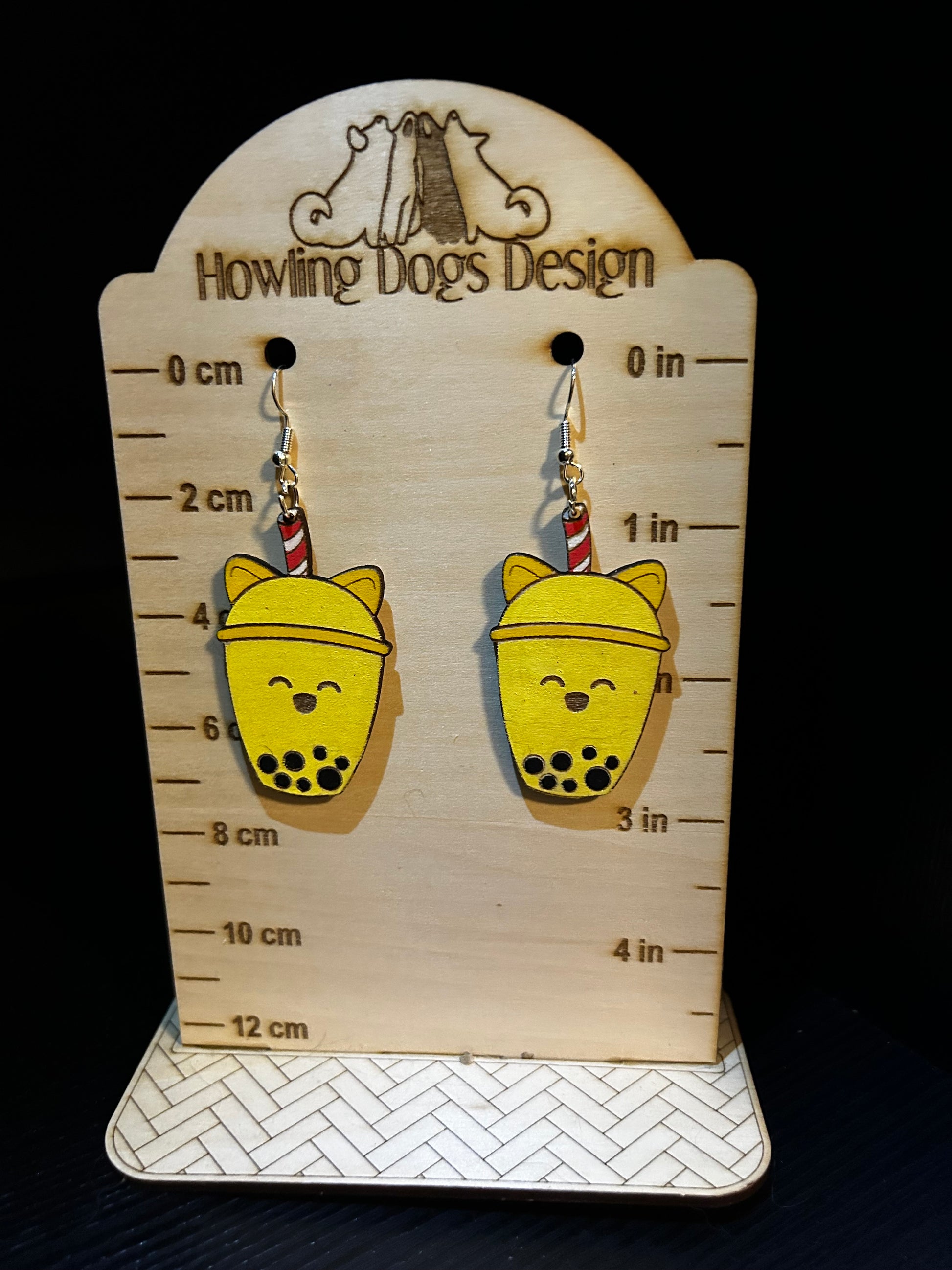 Introducing our Kitty Boba Earrings - laser cut from wood and hand painted for a unique touch. These earrings are perfect for cat lovers who also enjoy a cup of boba tea. Embrace your inner kitty with these adorable and stylish earrings.