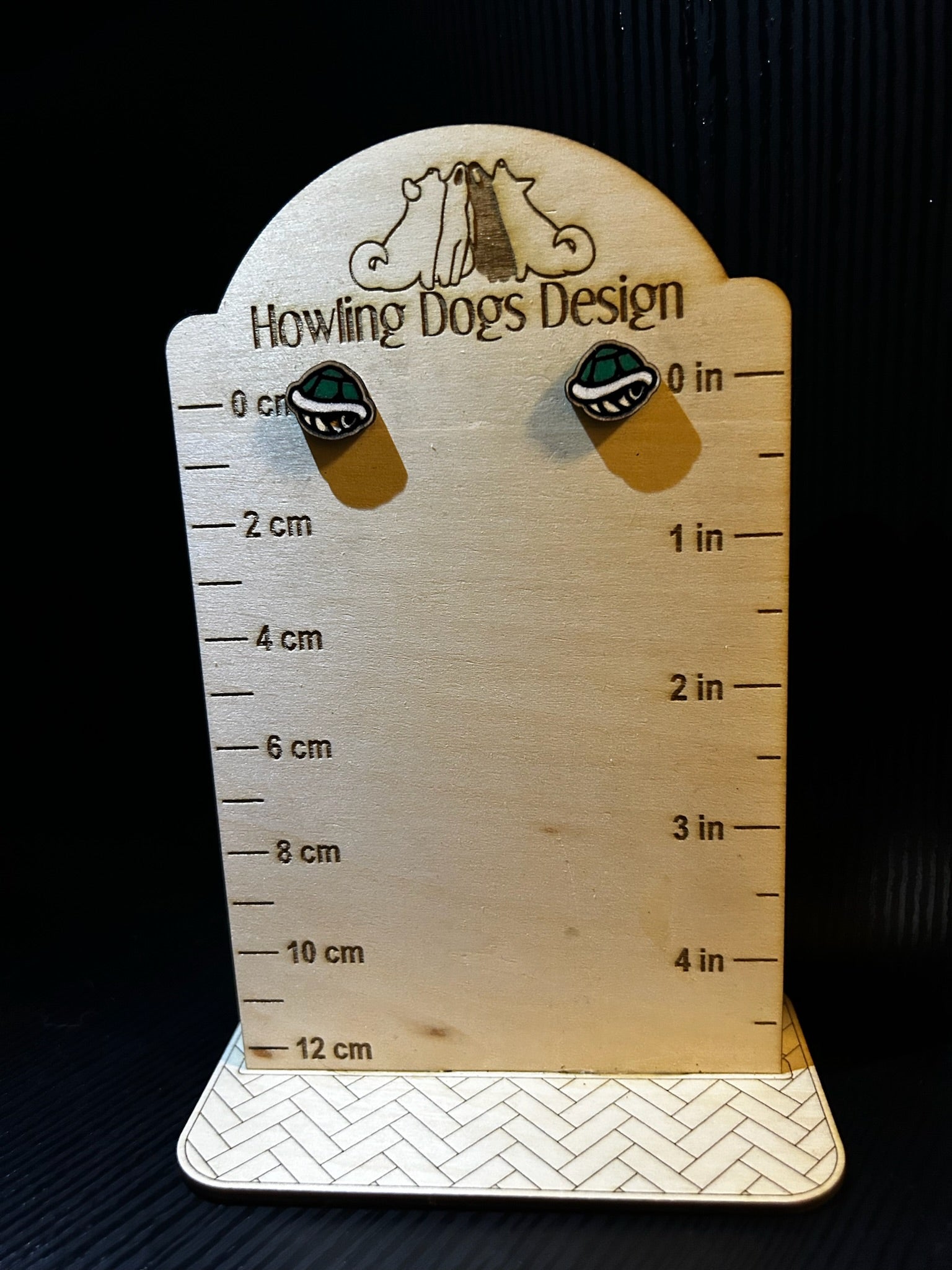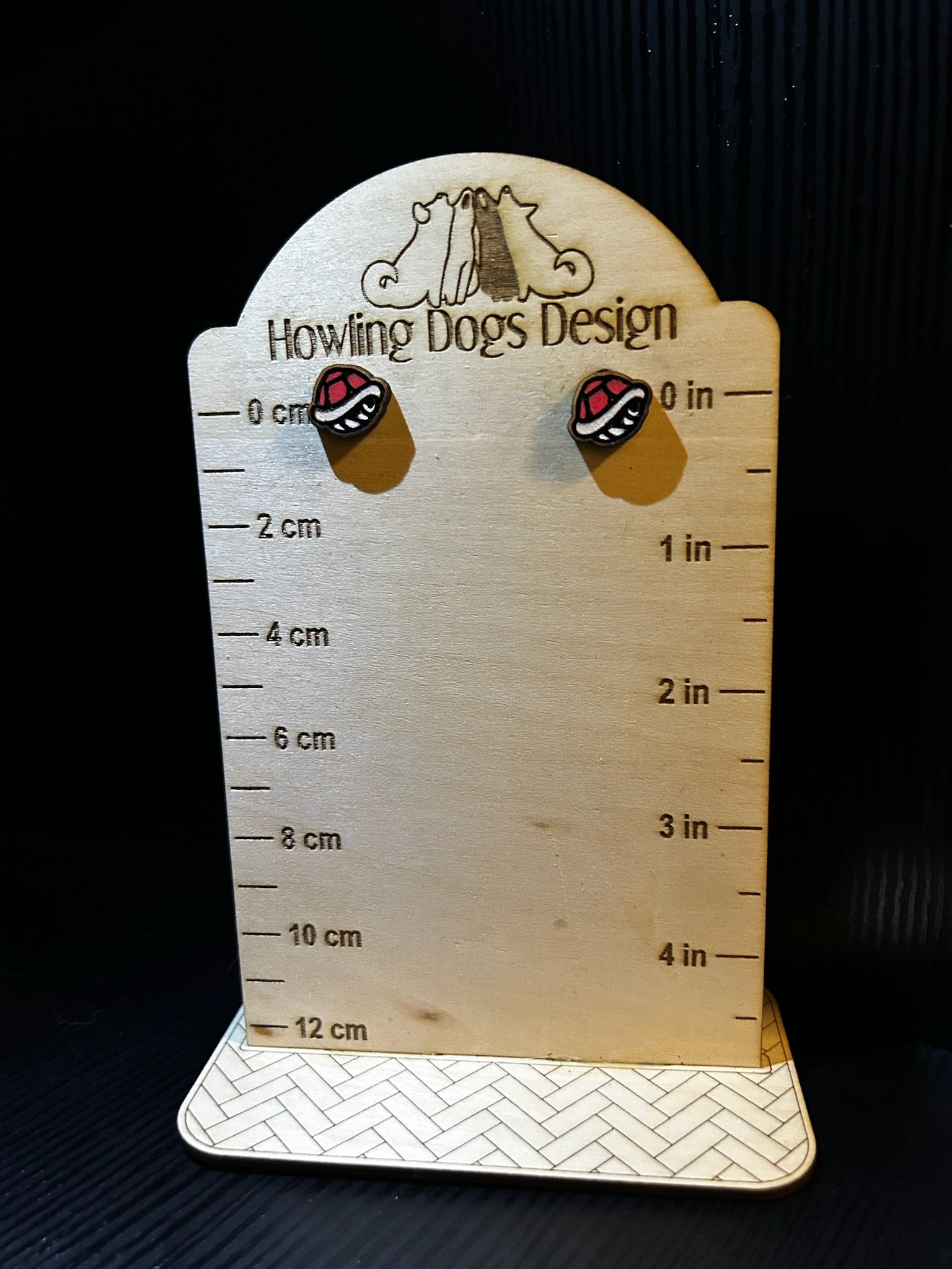 Add some playful style to your jewelry collection with these unique Koopa Paratroopa Shell Earrings. Crafted from laser cut wood and hand painted in vibrant green and red, these earrings are perfect for any Super Mario fan. Their lightweight design makes them comfortable to wear all day long.