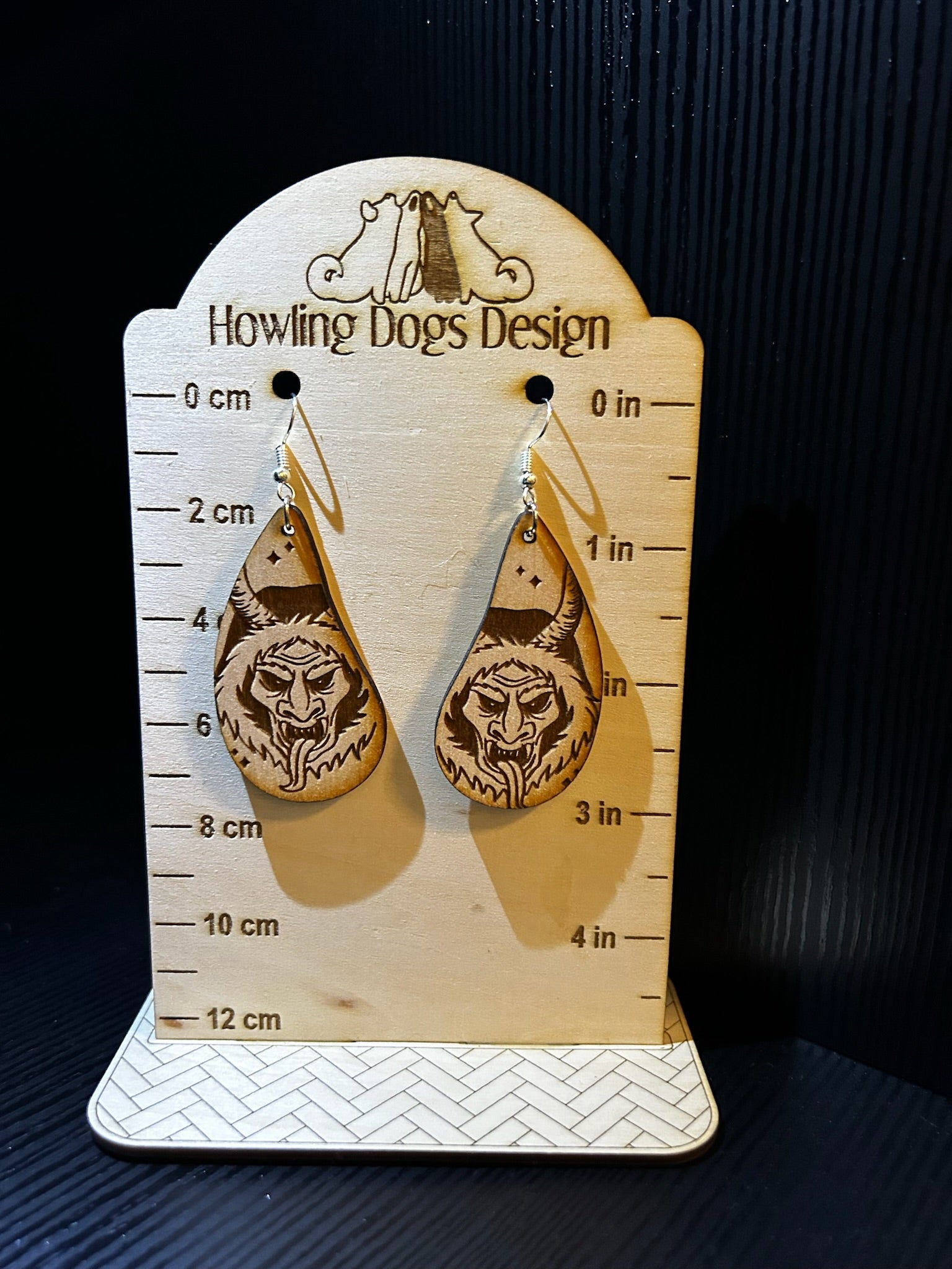 Expertly crafted with laser cut wood, these Krampus earrings are a unique and eye-catching addition to any outfit. The intricate design captures the mysterious and mischievous spirit of Krampus, making them the perfect accessory for any fan of the folklore figure.