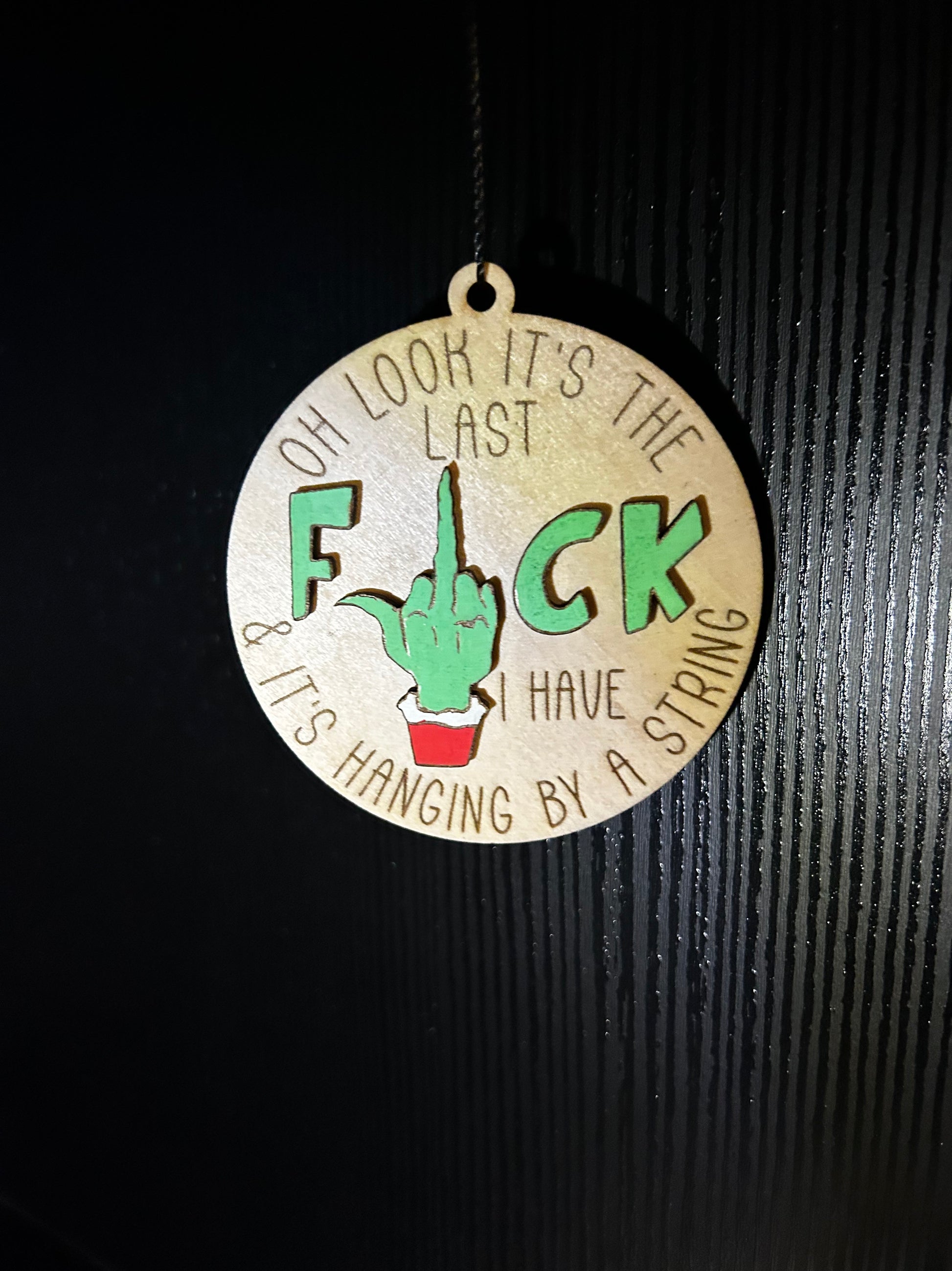 This hand-painted Last Fuck ornament features laser-cut wood for a unique and intricate design. As an expert in woodworking, we use precision and attention to detail to create a beautiful and lasting piece for your holiday decor. Add a touch of elegance to your tree this year with our expertly crafted ornament.