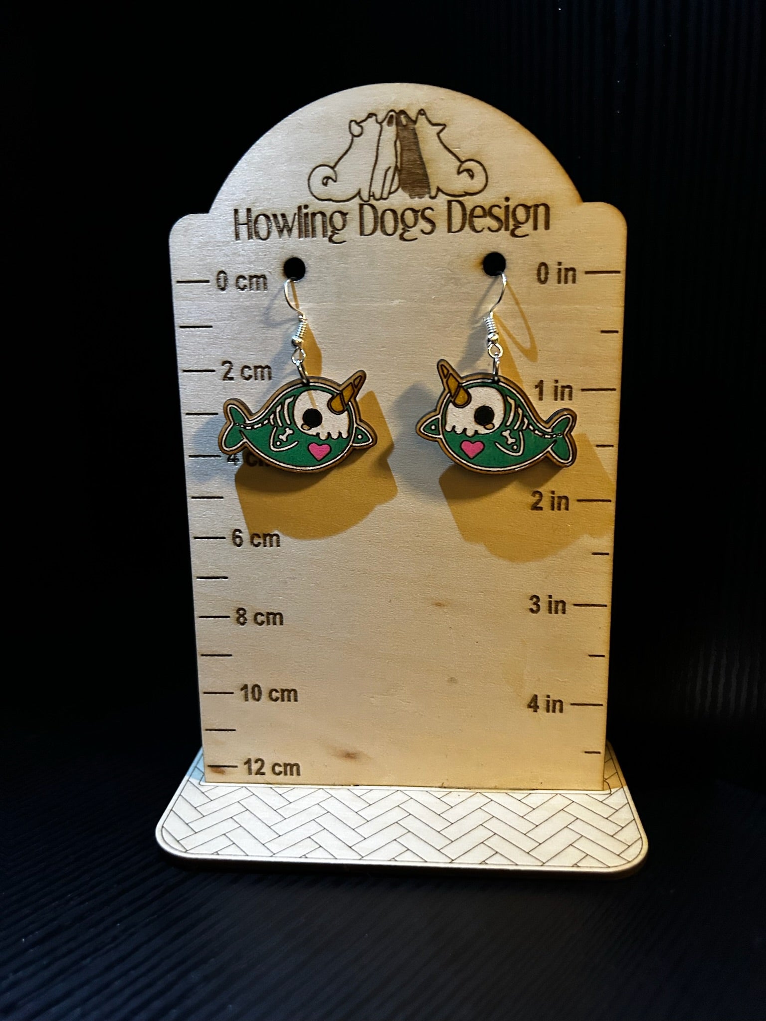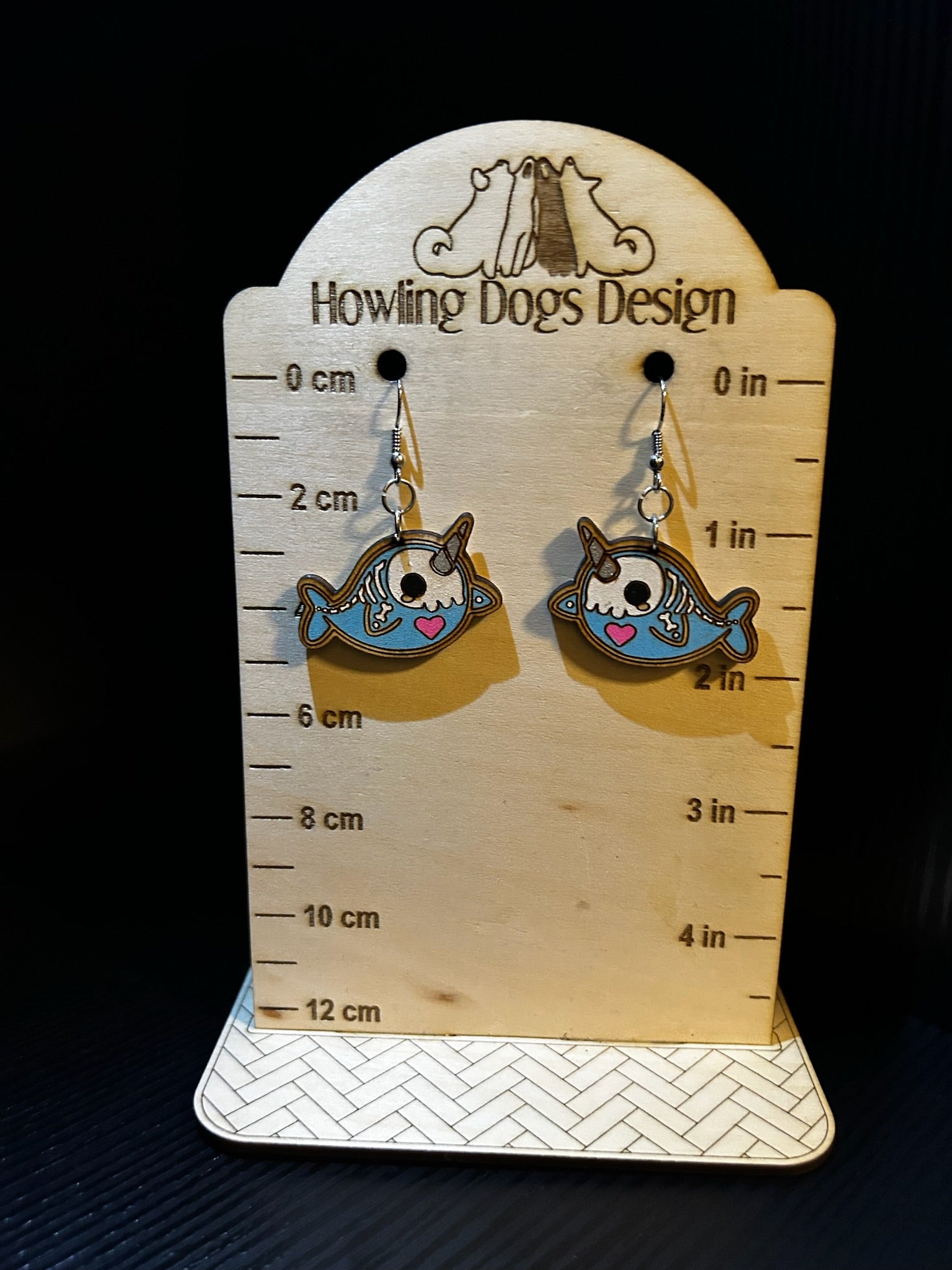 Discover the unique charm and beauty of our Narwhal Skeleton Earrings. Made from laser-cut wood and hand-painted, these earrings showcase the intricate details of the majestic narwhal skeleton. Show off your love for sea creatures with these one-of-a-kind earrings.