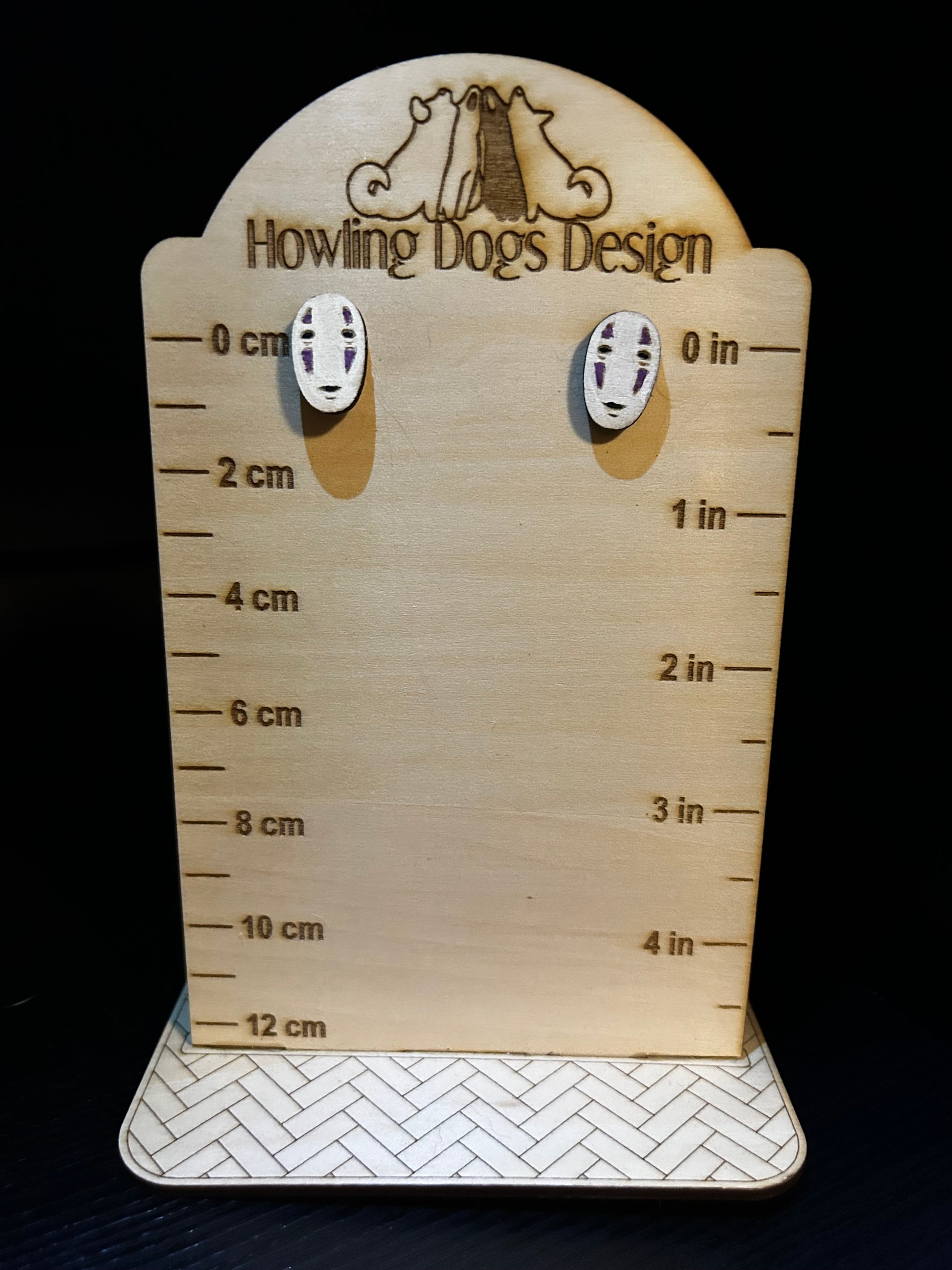 Introducing No Face Earrings, perfect for any Ghibli fan! These earrings are expertly laser cut from wood and hand painted for a unique and intricate design. Channel your love for Ghibli and add a touch of whimsy to any outfit with these one-of-a-kind earrings.
