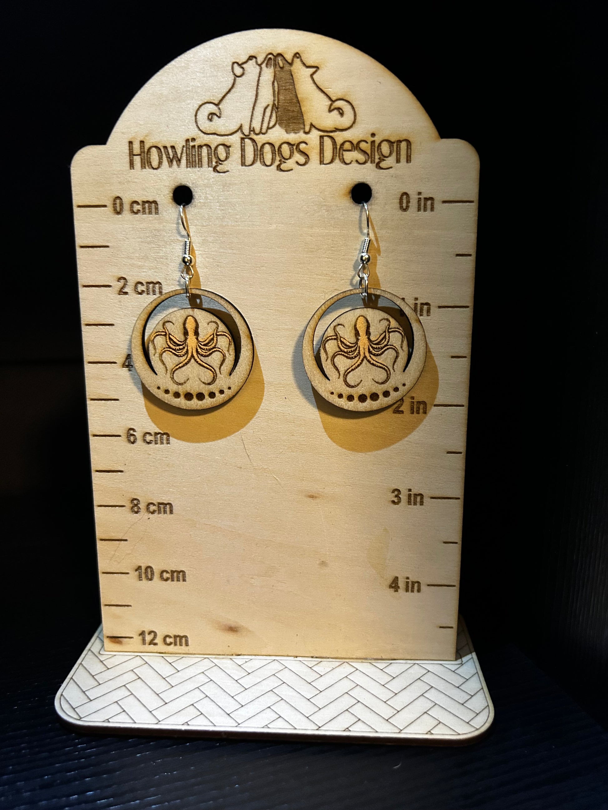 Expertly crafted from laser cut wood, these Octopus Circle Earrings are a unique and eye-catching addition to any jewelry collection. The intricate design of the octopus adds a touch of marine elegance to any outfit. Stand out with these one-of-a-kind earrings.