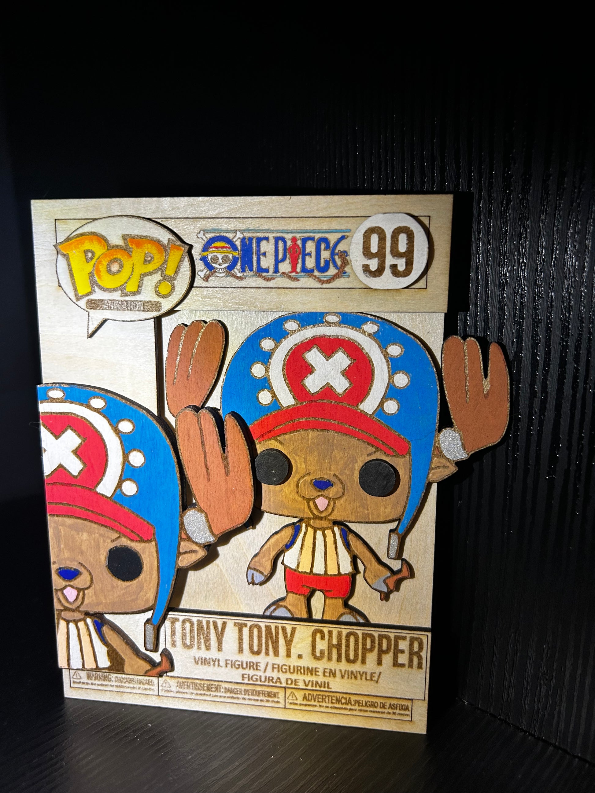 Enhance your collection with the One Piece Chopper Pop. This laser cut wood figure is carefully hand painted, providing a unique and detailed look. Add a touch of craftsmanship to your display with this expertly crafted piece.