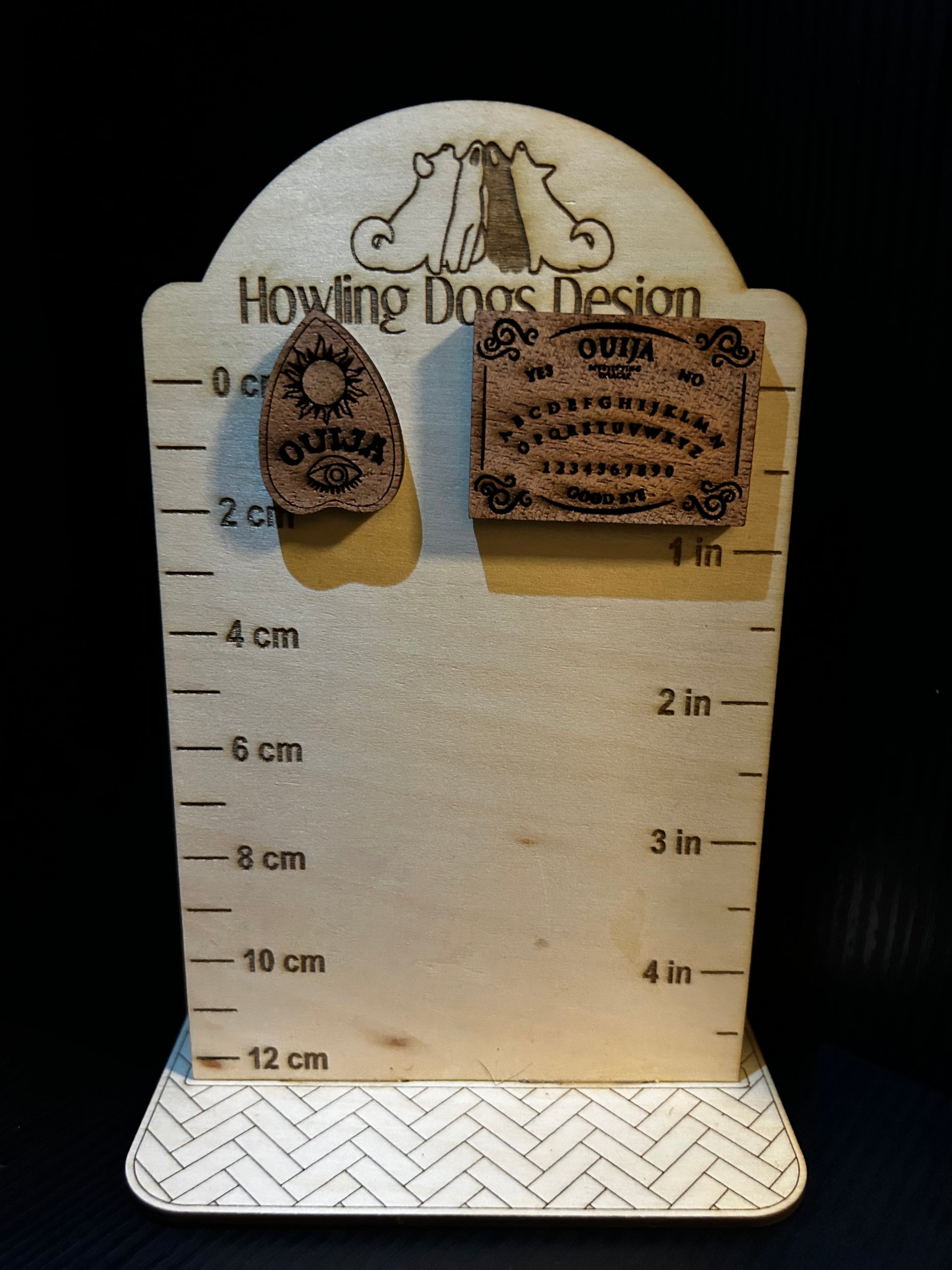 Crafted from high-quality mahogany wood using laser cut technology, the Ouija Board and Planchette Pin offers a premium and durable design. Perfect for enthusiasts and collectors, this pin adds a touch of mystique to any outfit.