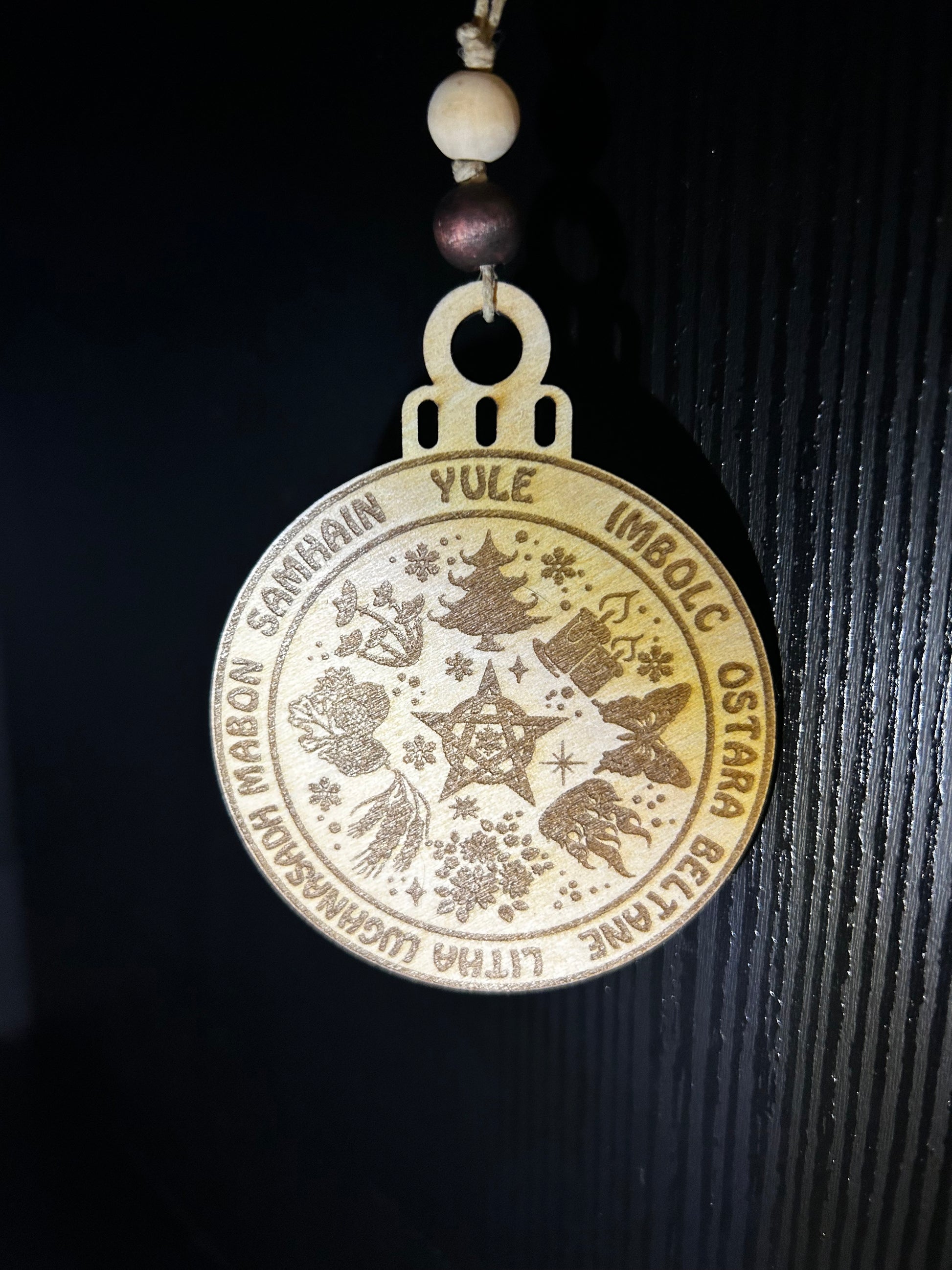 Crafted with precision, the Pagan holidays ornament is made with laser cut wood. This technique ensures clean and precise cuts, adding a touch of sophistication to your holiday decor. Elevate your festive ambiance with this high-quality ornament.