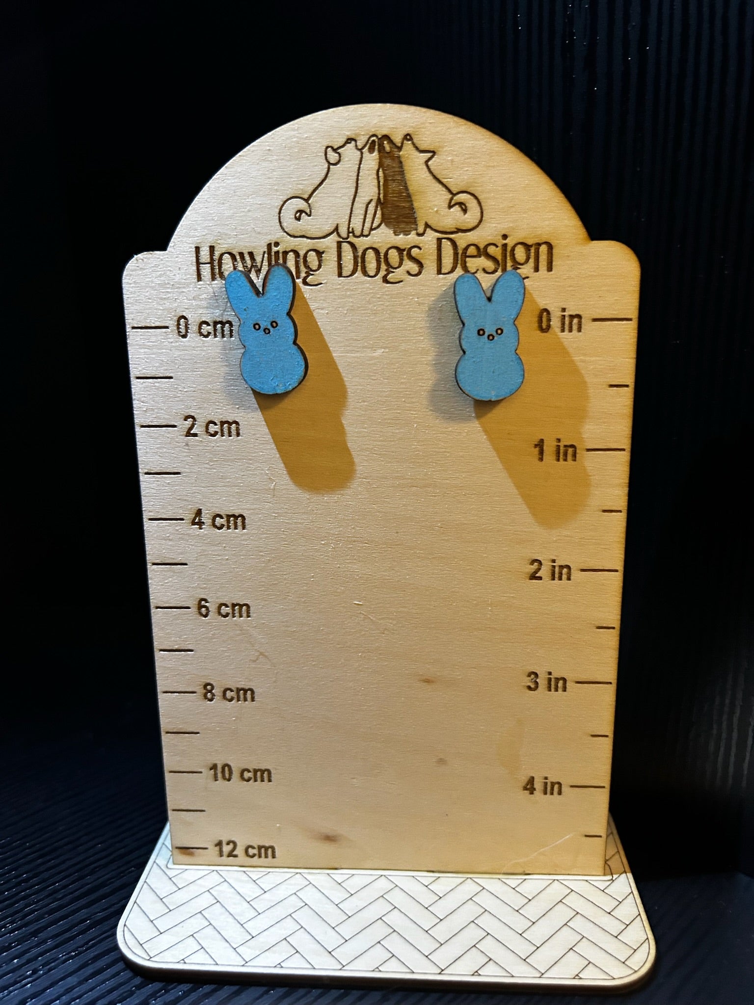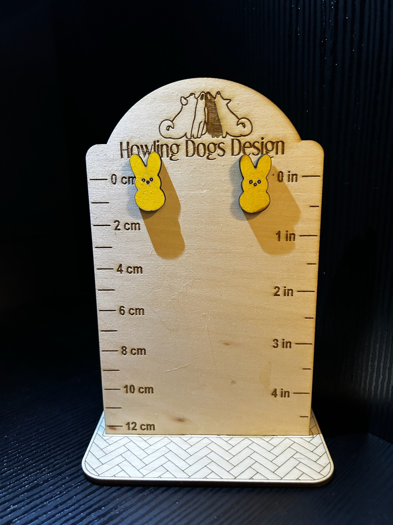 These Peeps Marshmallow earrings are a playful accessory to add to your outfit. Laser cut from wood and hand painted, these earrings feature cute bunny-shaped marshmallows. A fun addition for any occasion.