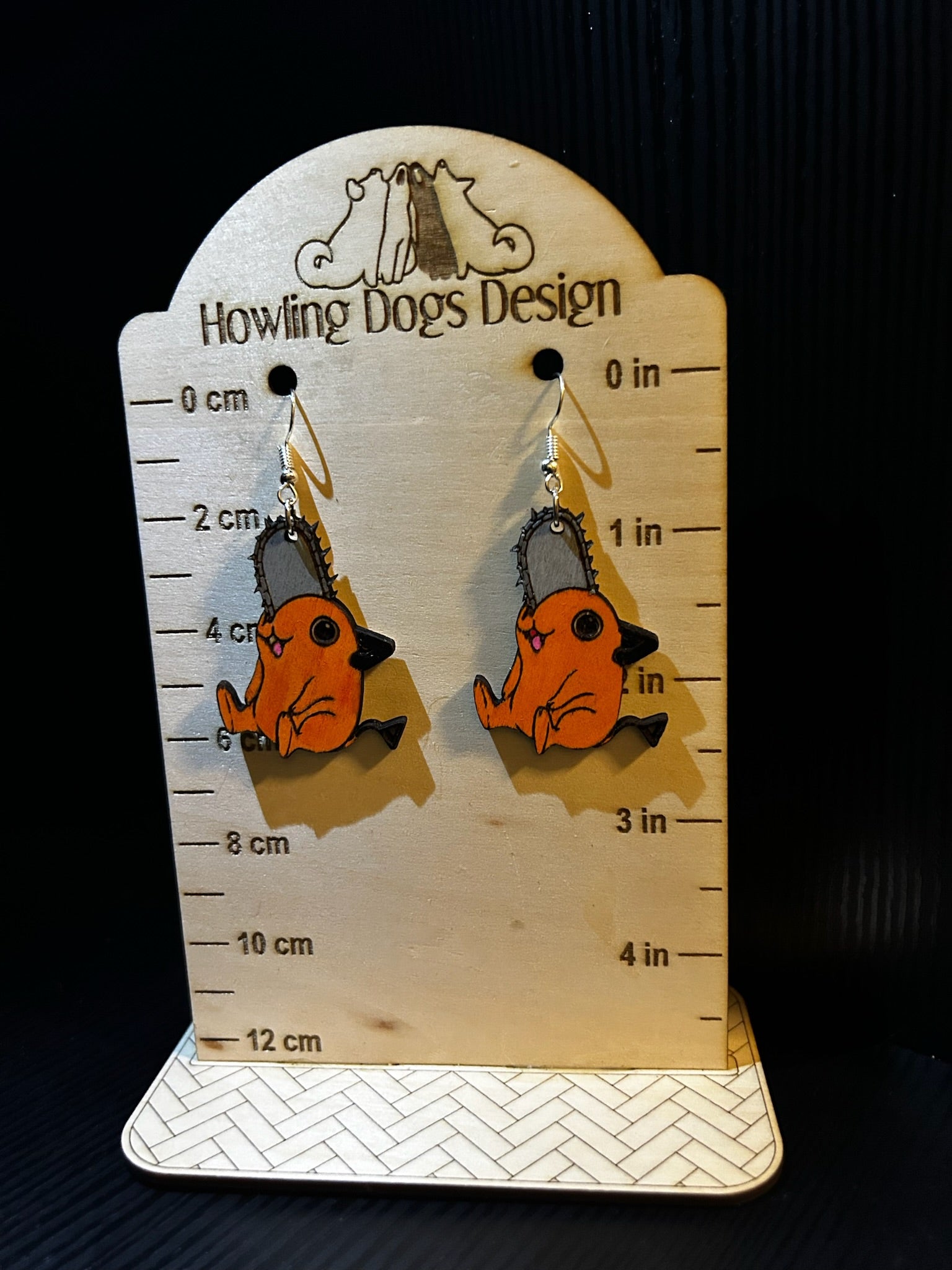 These laser cut wood earrings feature Pochita from Chainsaw Man and have been hand painted for a unique touch. Show your love for the anime with these stylish Pochita earrings. Made with precision and care, these earrings are a must-have for any anime fan.