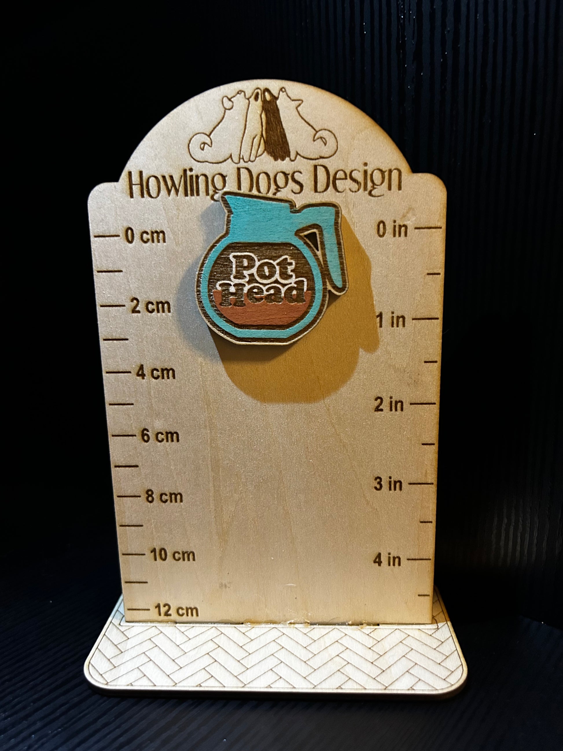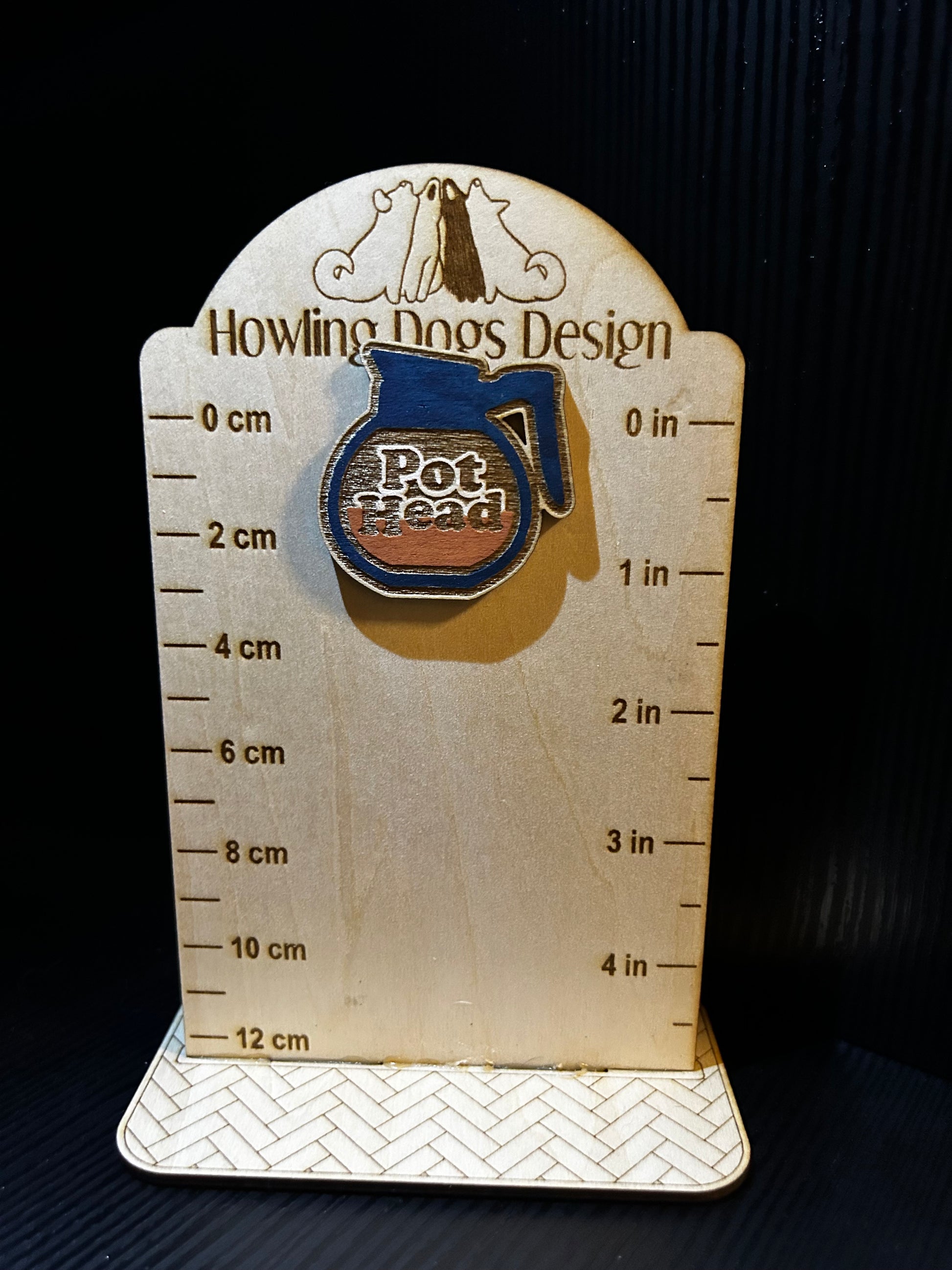 Add a touch of personality to your outfit with our Pothead Pin. This unique pin features a detailed design of a coffee pot, perfect for any coffee enthusiast. Made with high-quality materials, this pin is durable and long-lasting. Show off your love for coffee in style with our Pothead Pin.