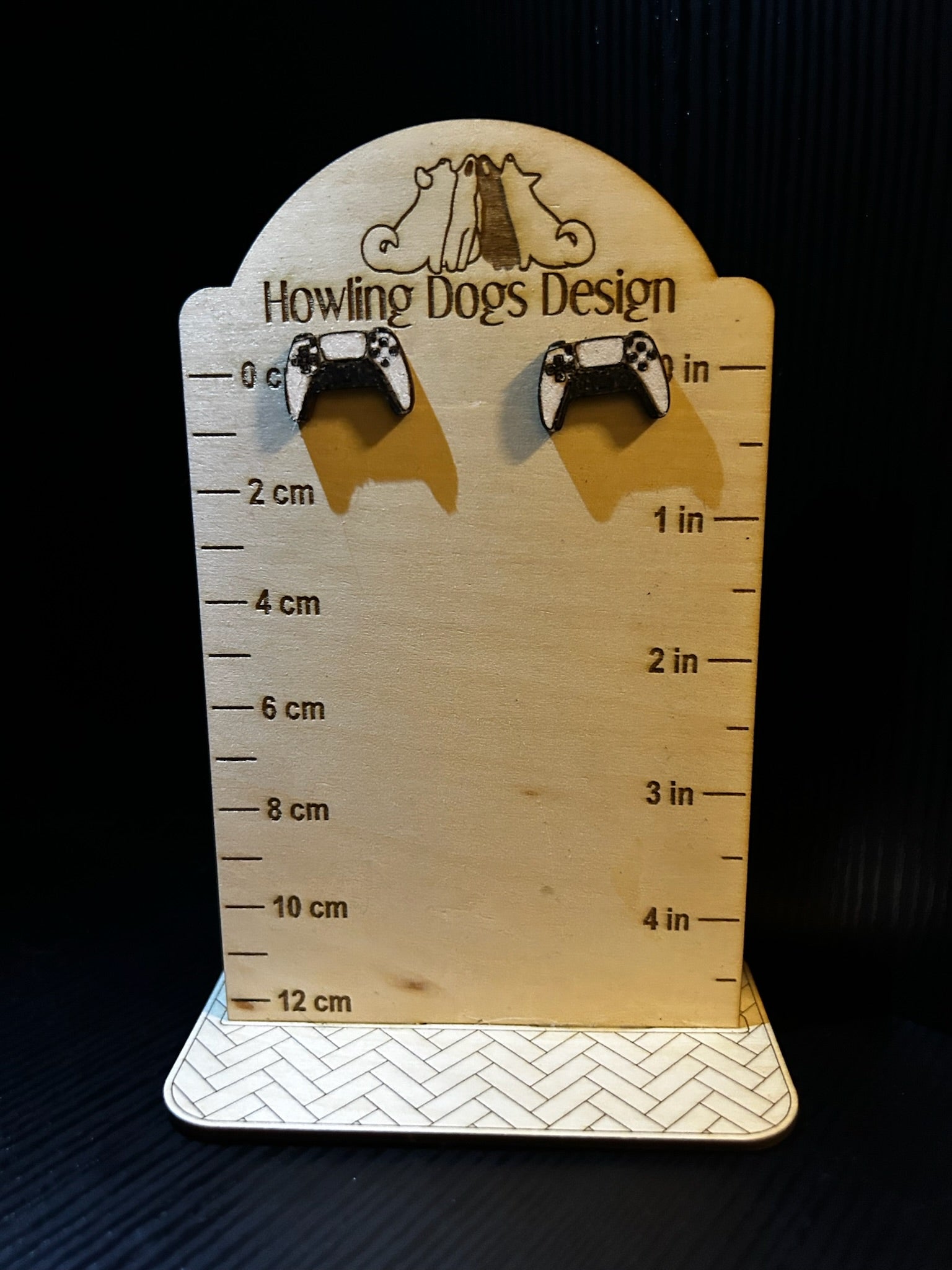 Experience the ultimate gamer style with our PS5 controller earrings. Made from laser cut wood and hand painted, these earrings are the perfect accessory for any gaming enthusiast. Show off your love for the PS5 in a unique and stylish way. Order now and level up your fashion game!