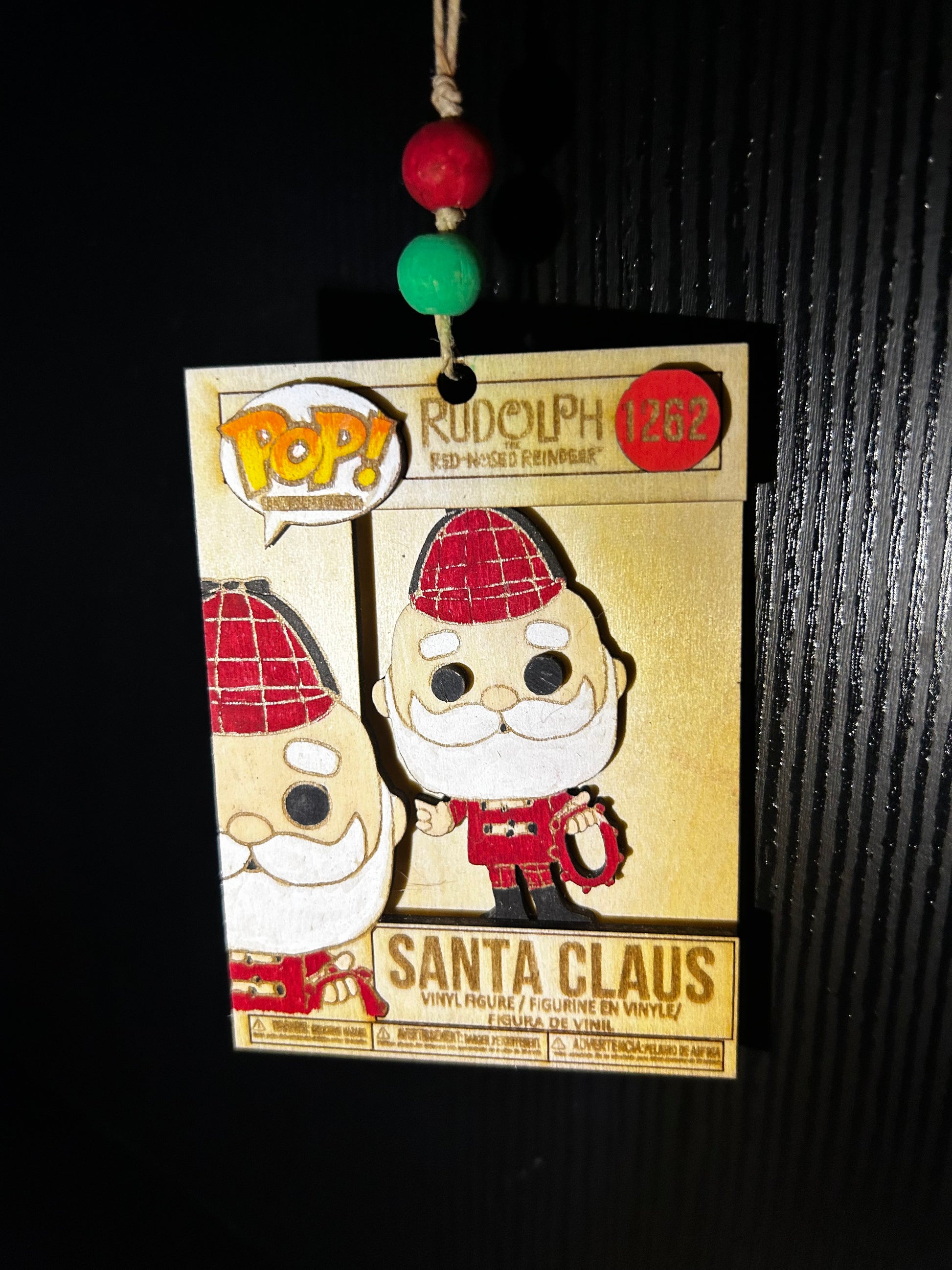 This Santa Claus Pop ornament is a festive addition to any holiday decor. Laser cut from wood and hand painted, it features a classic design based on the beloved Rudolph the Red-Nosed Reindeer movie. Add this charming ornament to your collection and bring a touch of Christmas cheer to your tree.