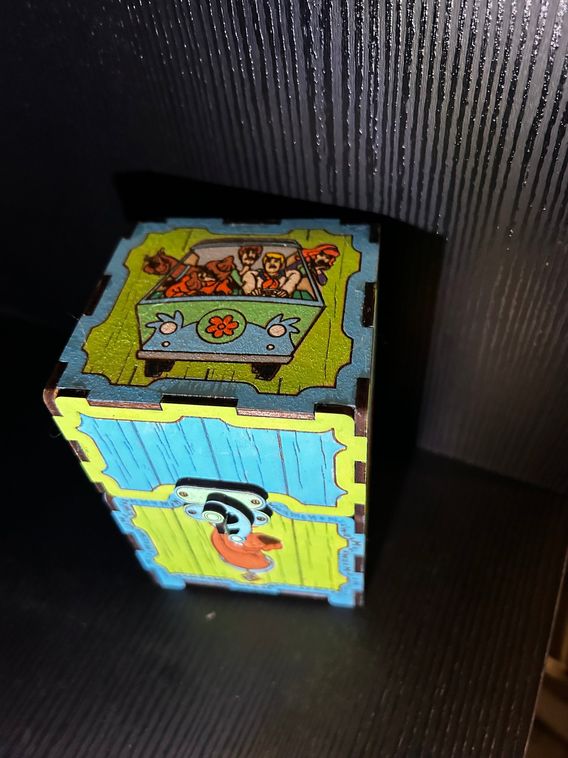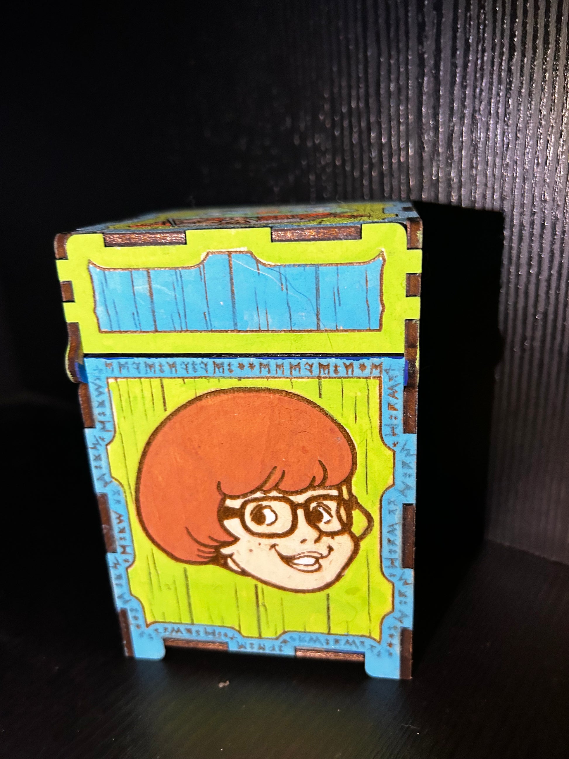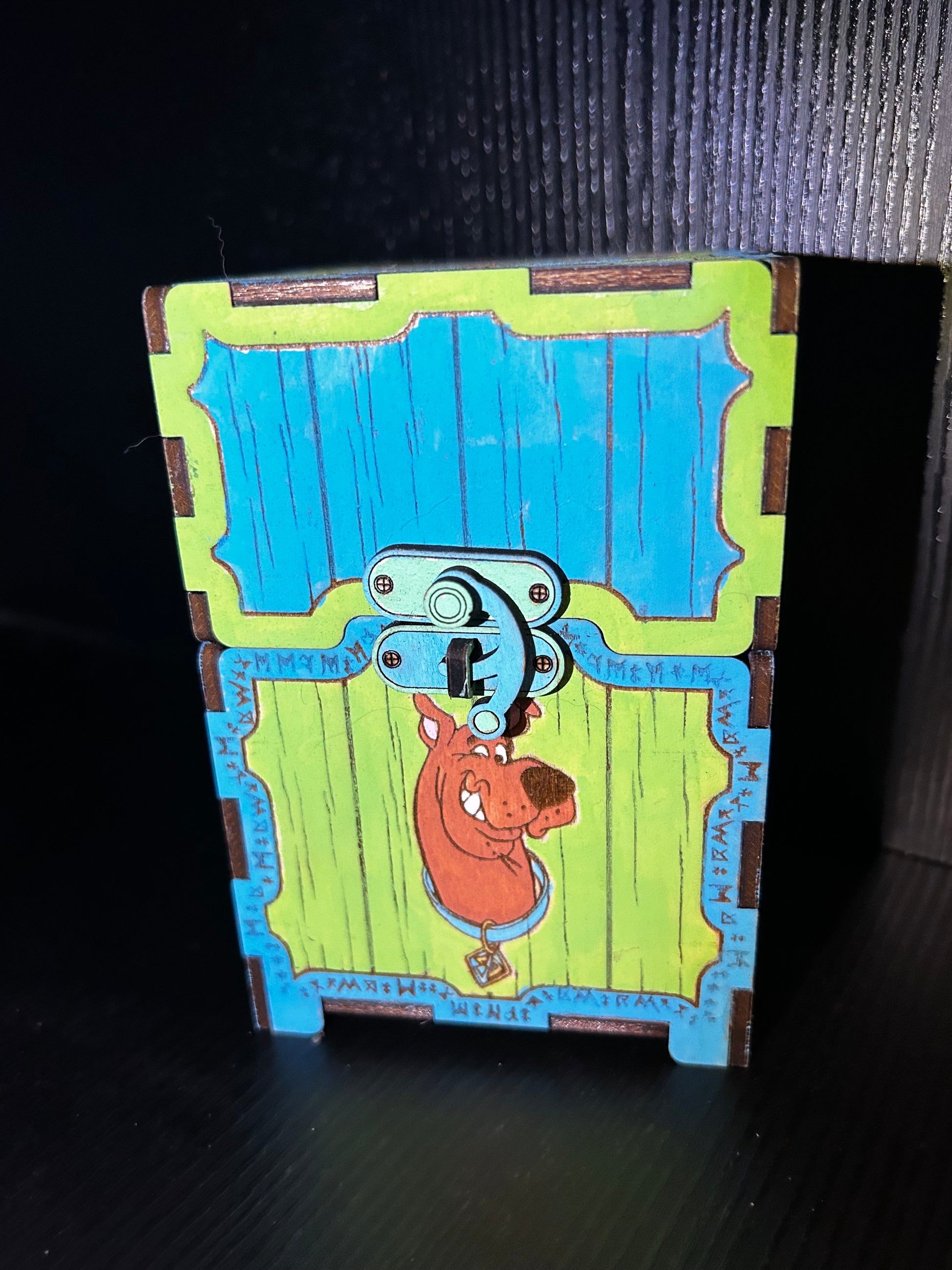 Introducing the Scooby Doo deck box, a must-have accessory for any avid card player. Made from laser cut wood and hand painted, this box combines intricate craftsmanship with a pop culture icon. Keep your cards safe and add a touch of nostalgia to your next game night.