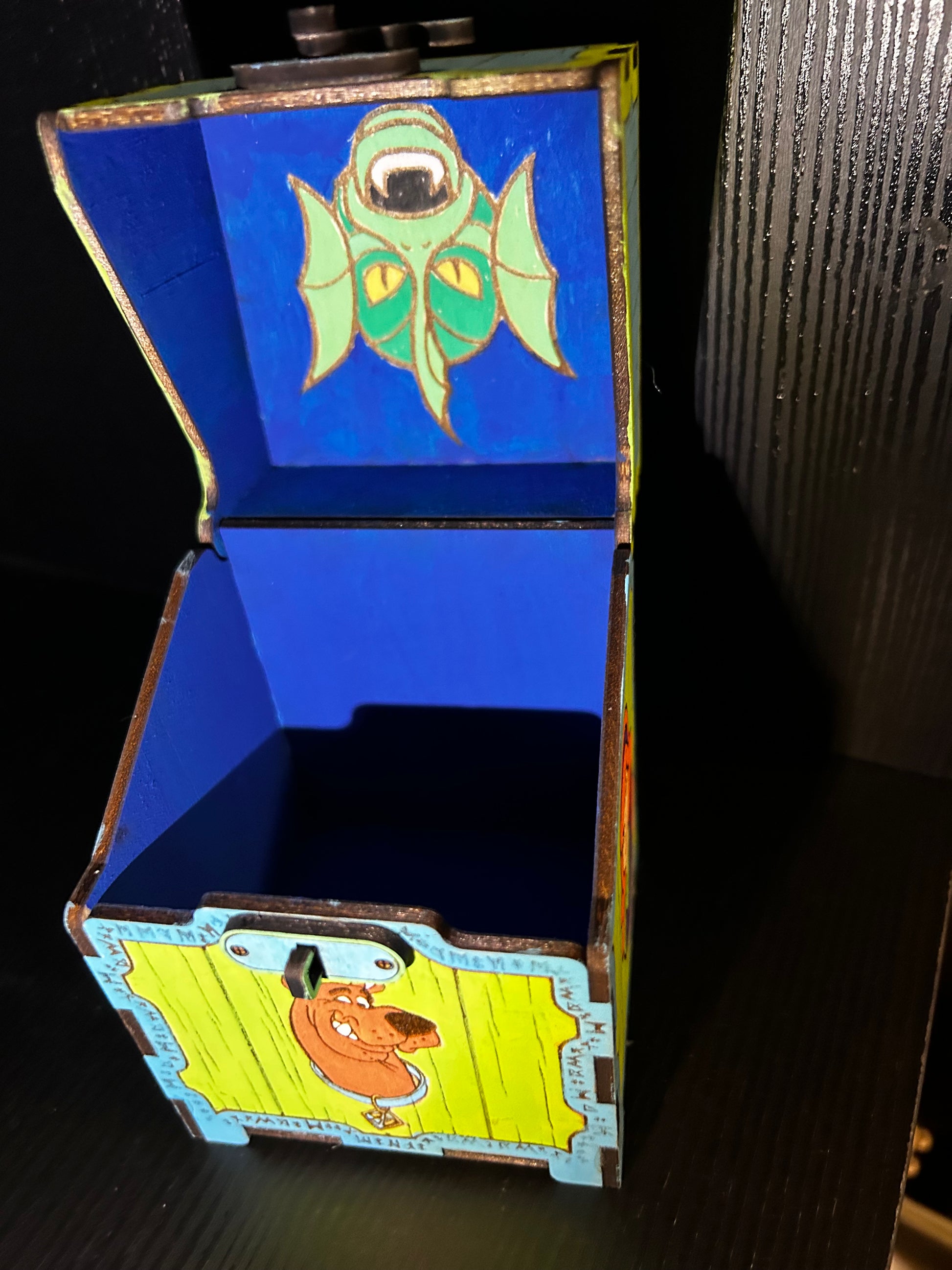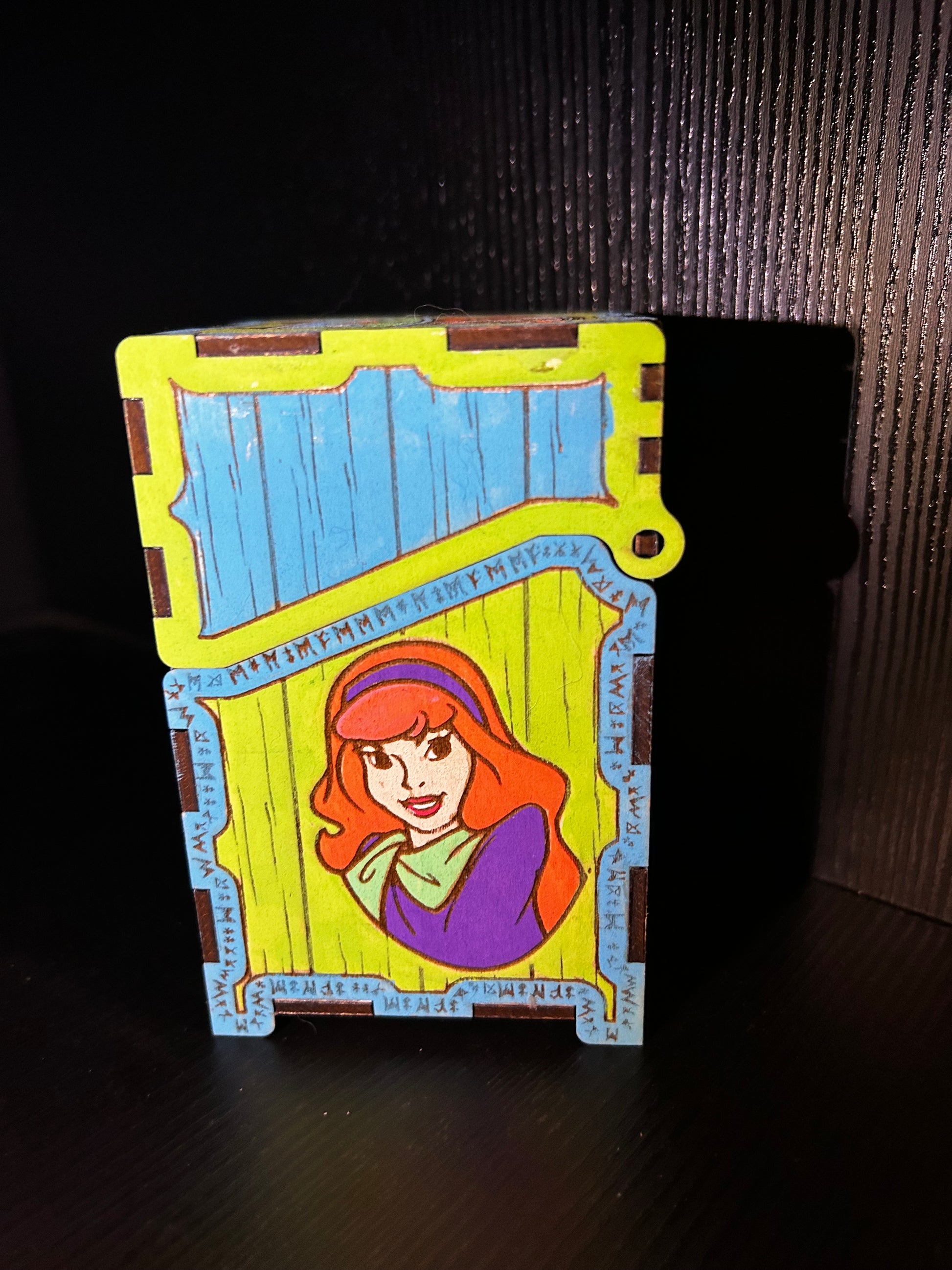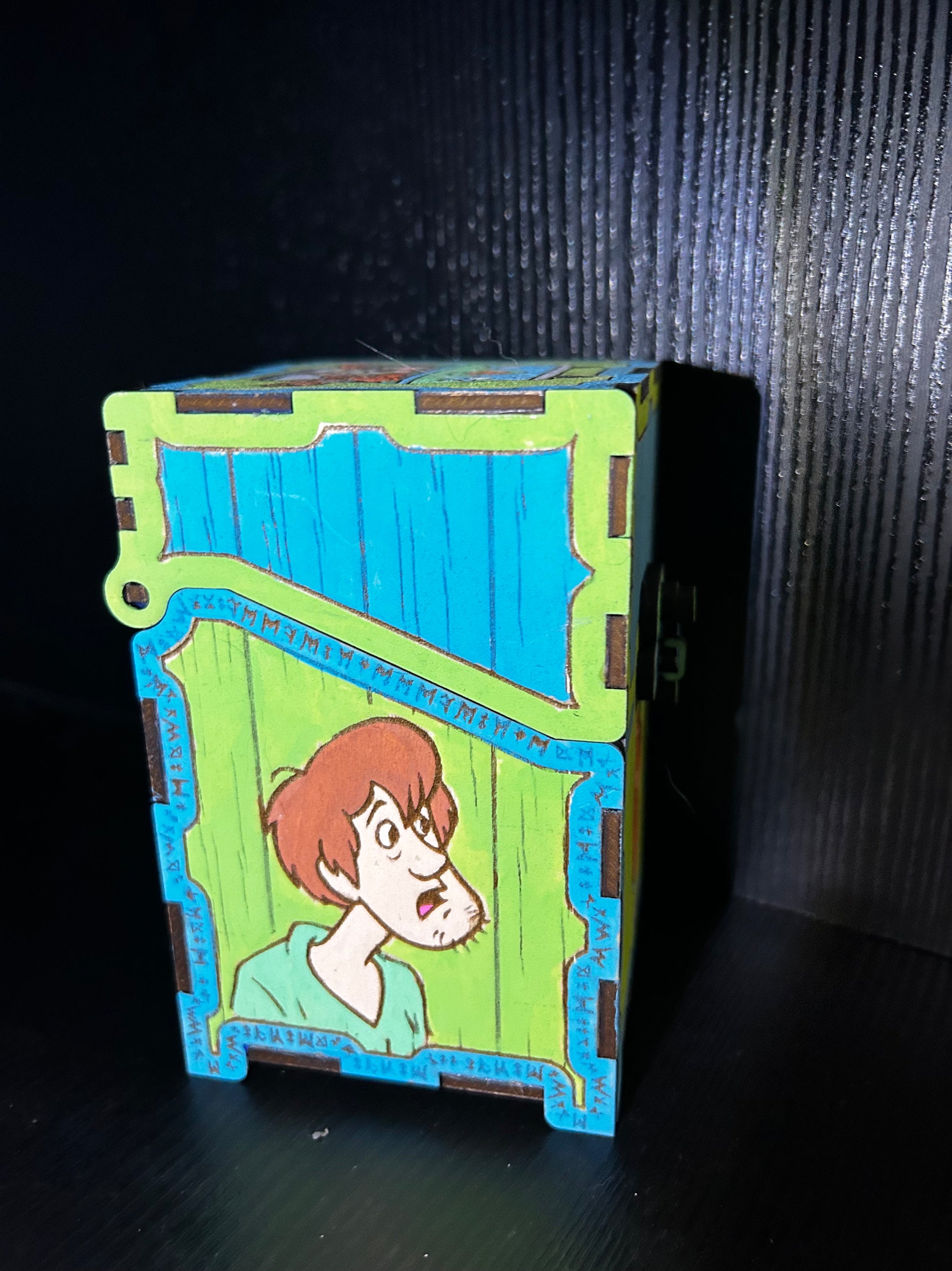 Introducing the Scooby Doo deck box, a must-have accessory for any avid card player. Made from laser cut wood and hand painted, this box combines intricate craftsmanship with a pop culture icon. Keep your cards safe and add a touch of nostalgia to your next game night.