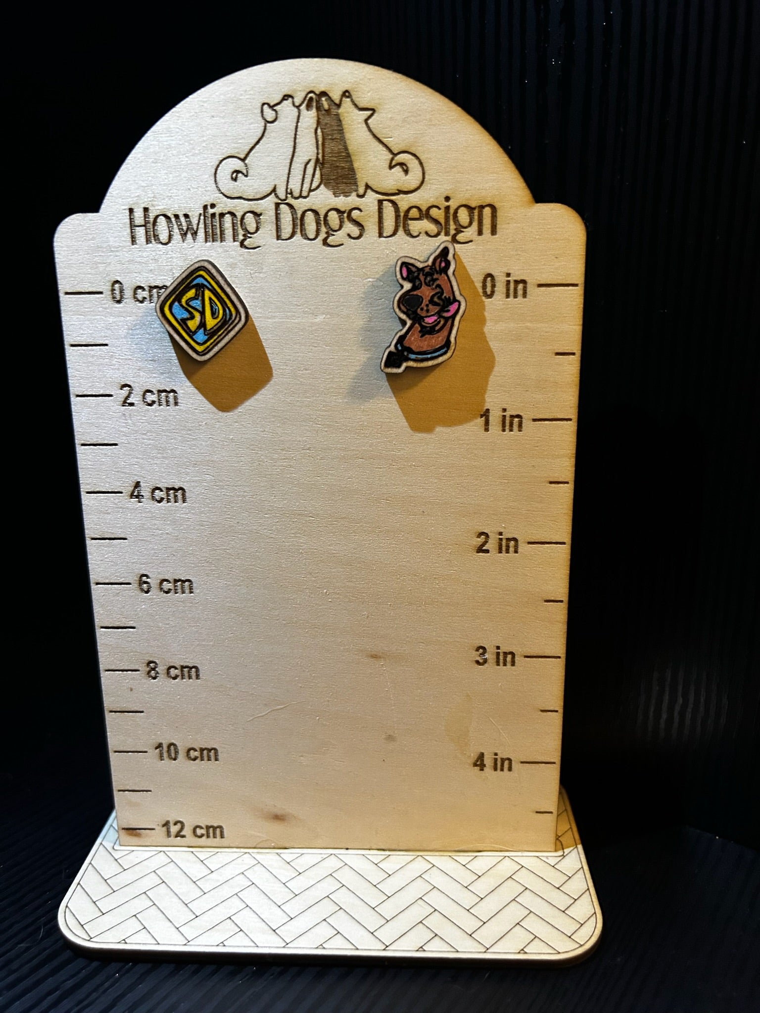 These unique Scooby Doo earrings are laser cut from wood and hand painted, making them one-of-a-kind accessories. Their intricate design and high-quality craftsmanship make them a must-have for any fan of the iconic cartoon character. Add a touch of nostalgia to your outfit with these stylish and playful earrings.