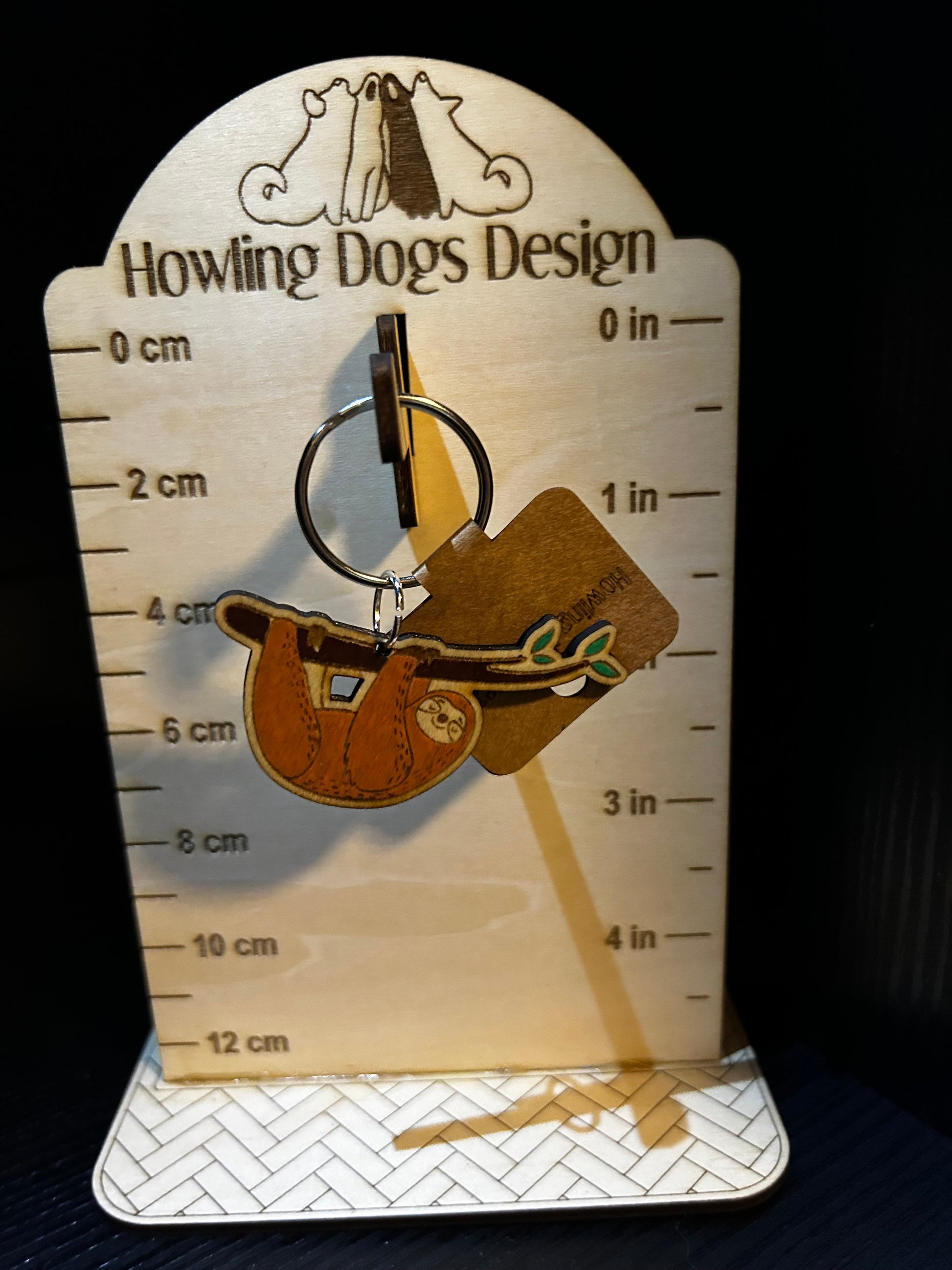 This adorable Sloth keychain is laser cut from wood and hand painted for a unique design. Perfect for animal lovers and nature enthusiasts, this keychain adds a touch of cuteness to any set of keys. Made with precision and care, this keychain is a must-have accessory.