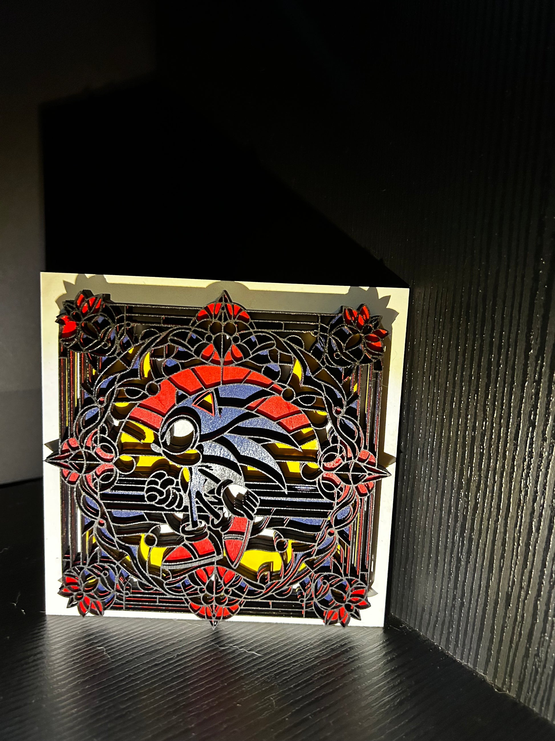 Highlight your love for classic video games with this Sonic the Hedgehog layered artwork. Made from laser cut wood and hand-painted, this piece showcases the iconic character in a unique and modern way. Perfect for any gamer or nostalgia enthusiast, this artwork is a must-have addition to your collection.