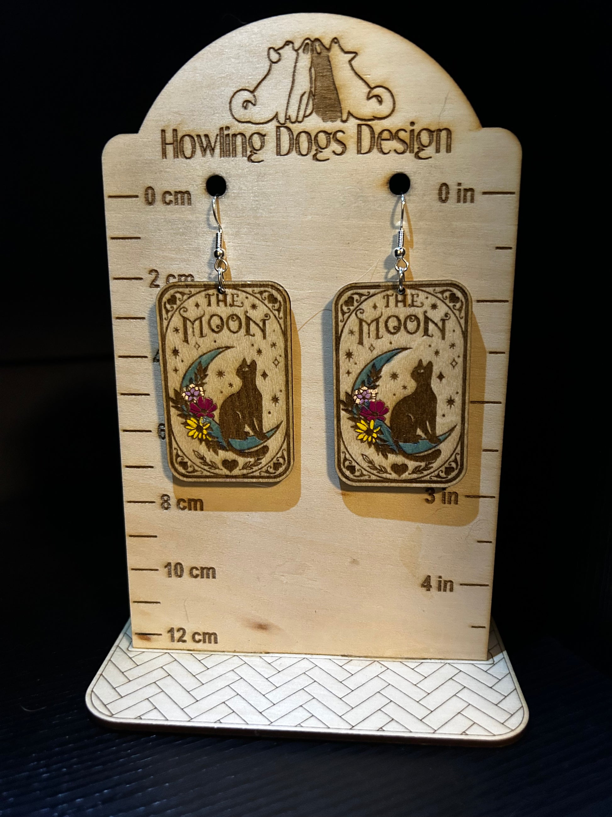 Expertly crafted with laser-cut wood and hand-painted with intricate details, The Moon Cat Tarot Card Earrings are a must-have for any tarot enthusiast. These unique earrings feature the beloved Moon Cat design, bringing a touch of magic and mysticism to any outfit. Add a touch of whimsy and personal expression to your style with these stunning and versatile accessories.