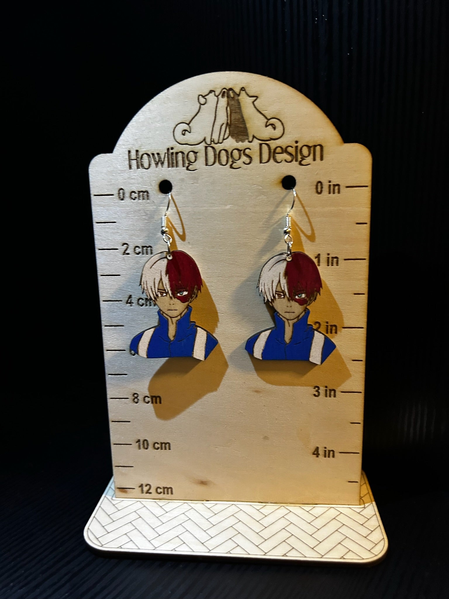 These Todoroki Shouto earrings from My Hero Academia are laser cut from wood and hand painted, capturing intricate details and adding a touch of uniqueness. The perfect accessory for any fan, these earrings showcase the character's iconic design, making them a must-have for any collection.