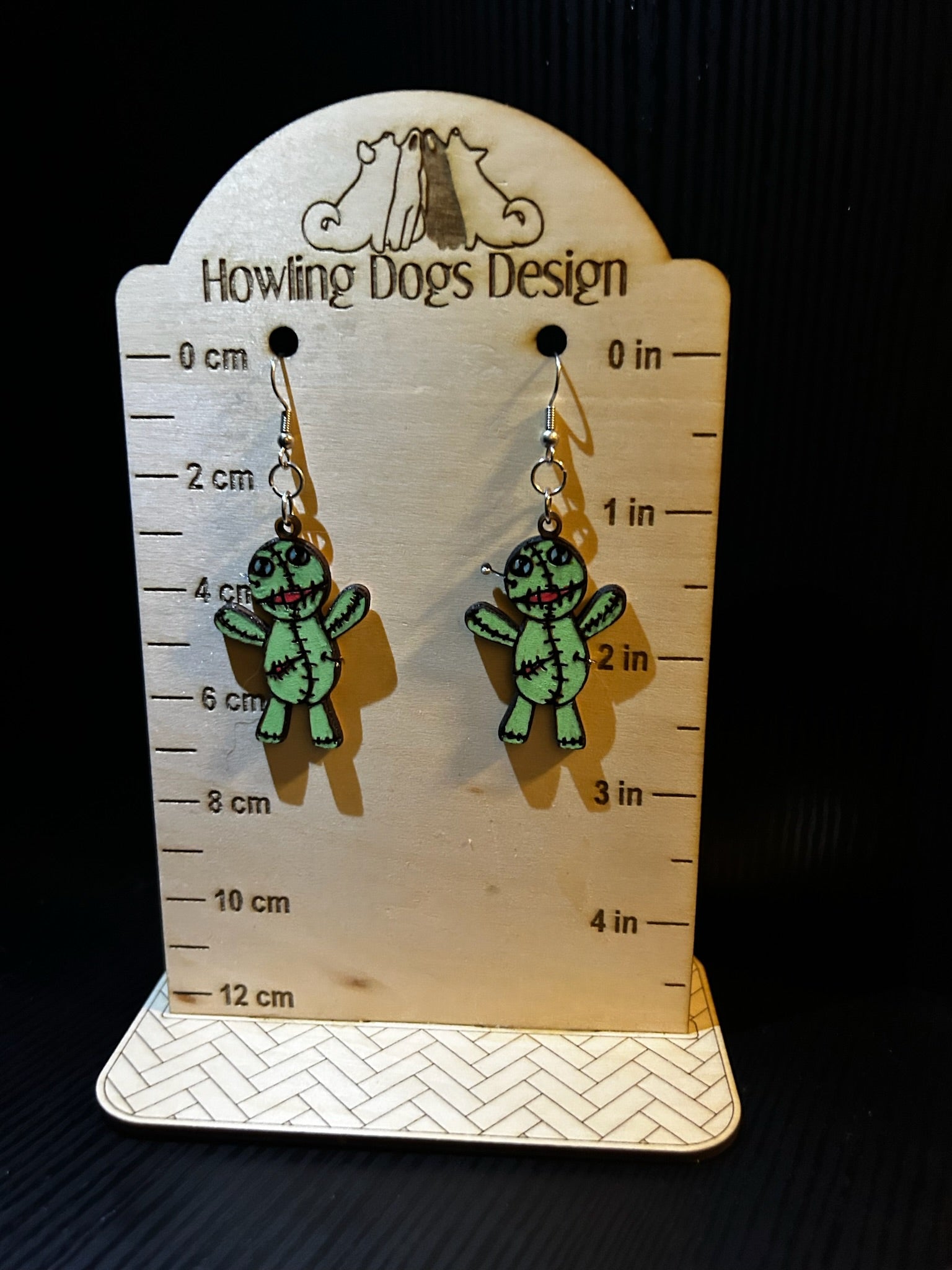 Add a unique and mystical touch to your outfit with our Voodoo doll earrings. Made from laser cut wood and hand-painted, these earrings will make a bold statement.