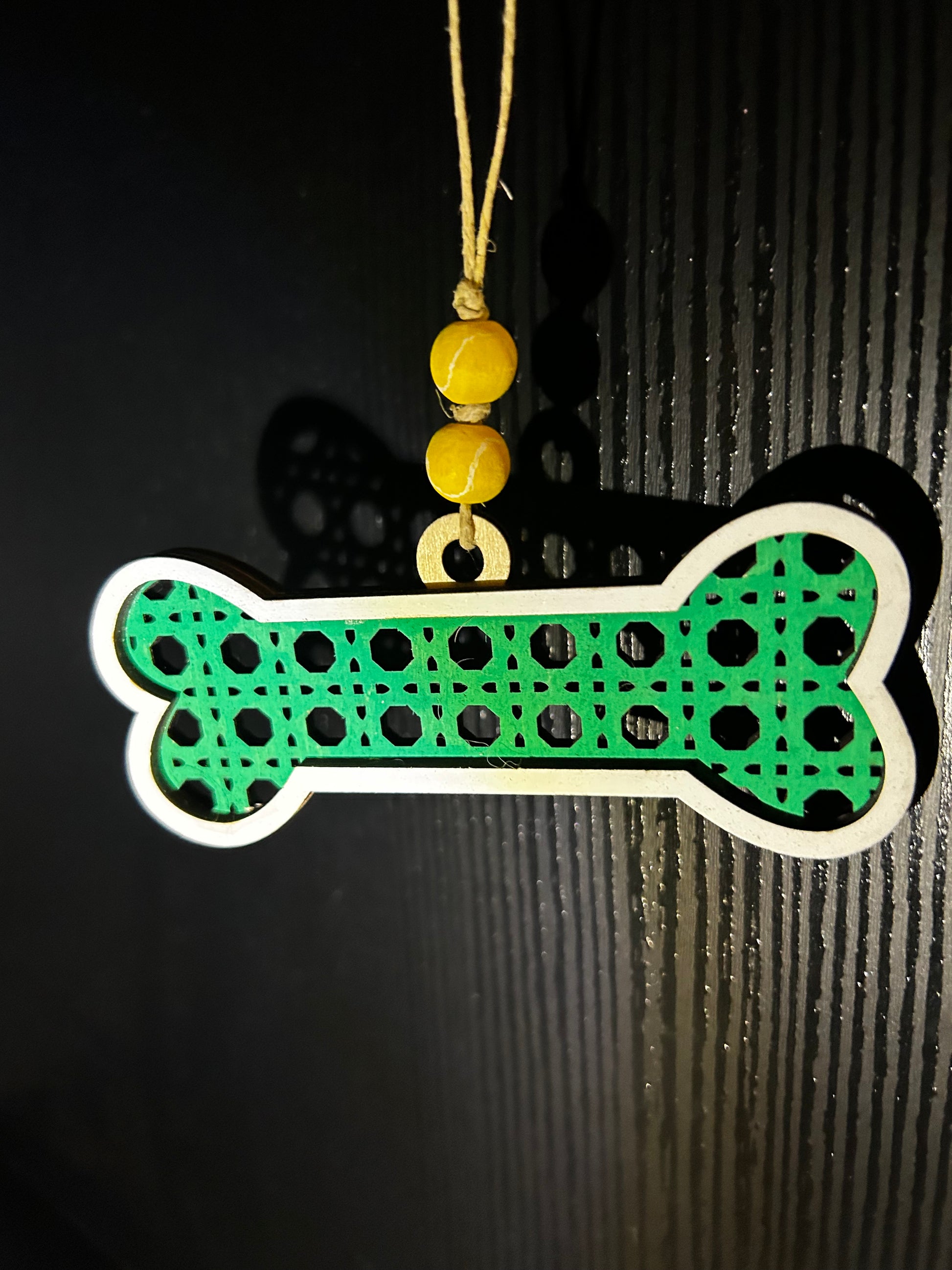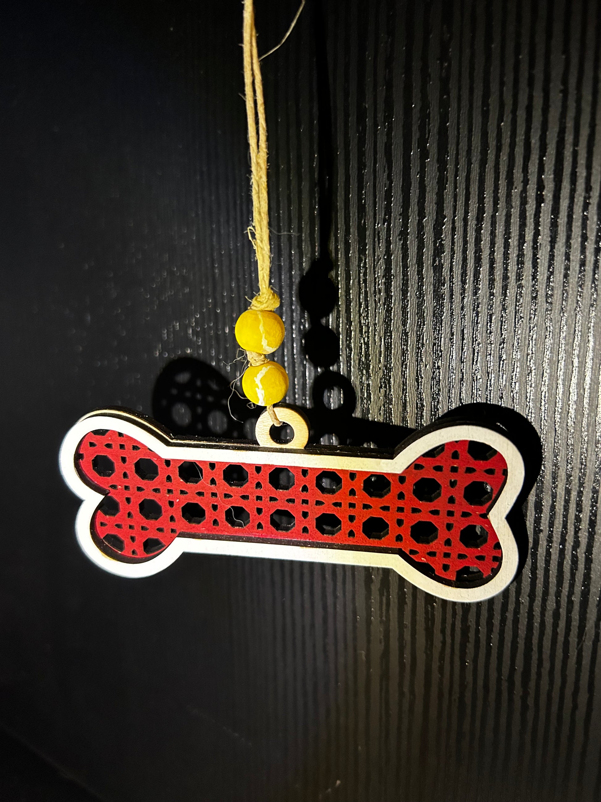 Add a touch of charm to your holiday decor with our Wicker Dog Bone Ornament. Made from laser cut wood and hand painted, each one is unique and brings a warm, cozy feel to any tree.