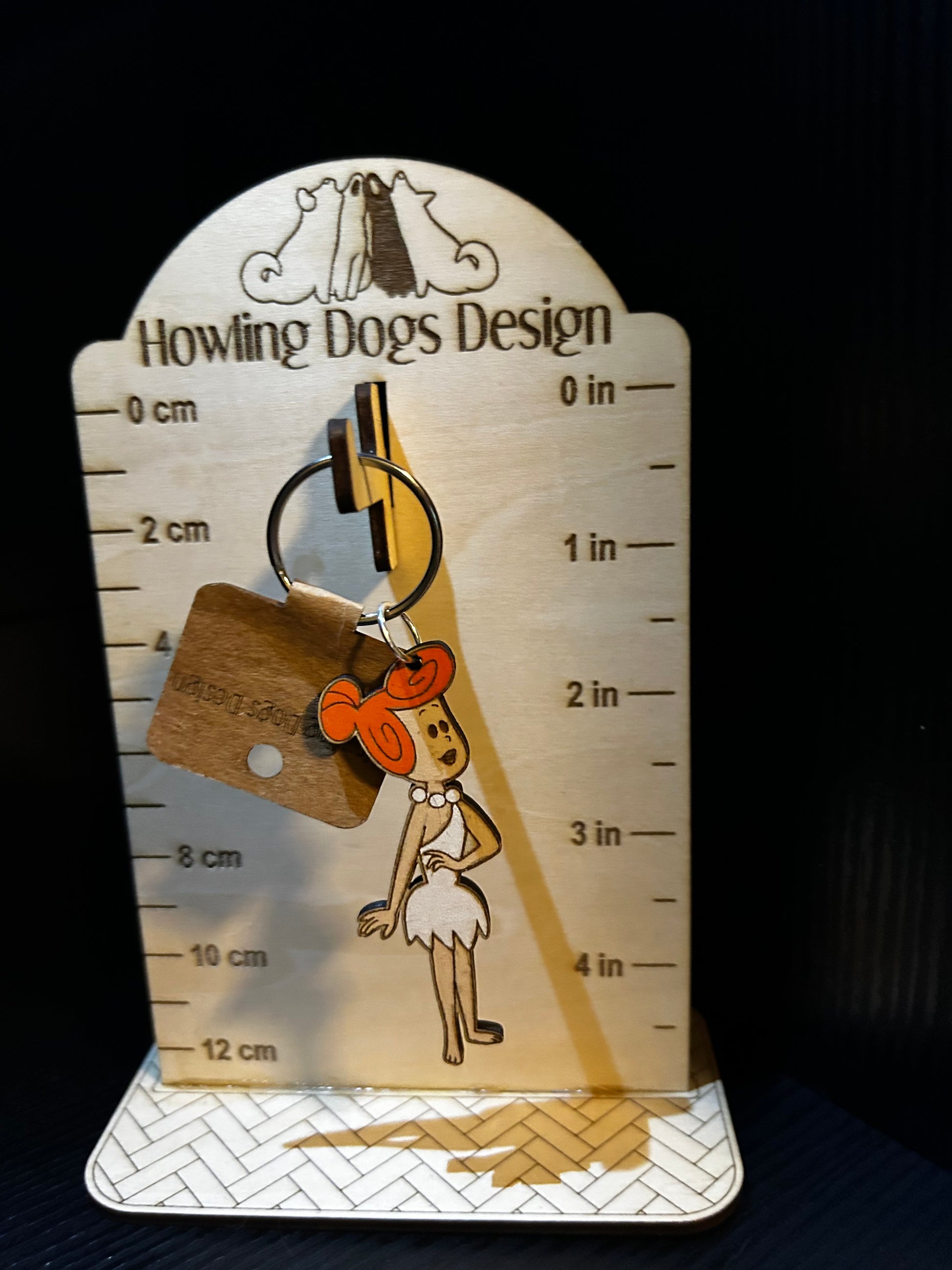 As a laser cut wood keychain, our Wilma Flintstone Keychain offers a unique and durable way to keep your keys organized. The hand-painted design ensures each keychain is one-of-a-kind. Add a touch of nostalgia to your daily routine with our expertly crafted keychain.